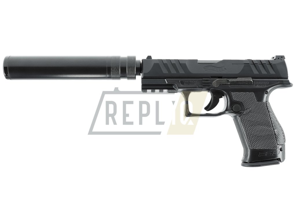 Manuální airsoftová pistole značky Walther. Autentická replika modelu PDP Compact s prodloužením hlavně v podobě imitace tlumiče.Princip manuální airsoft pistole: závěrem pistole je mechanicky stlačována pružina, které po stisku spouště před sebou tlačí píst. Ten vytváří tlak, který nakonec vyžene střelivo z hlavně ven.