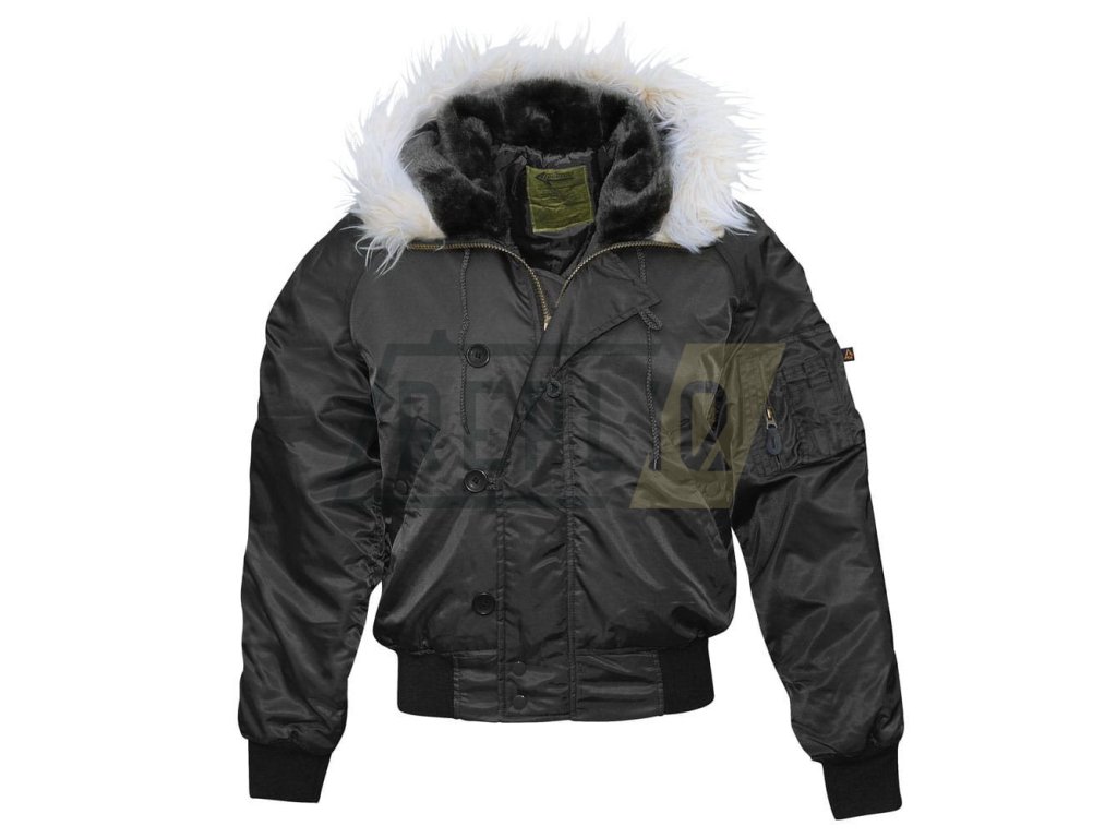 Bunda pilotní aljaška N-2B s kapucí ČERNÁ