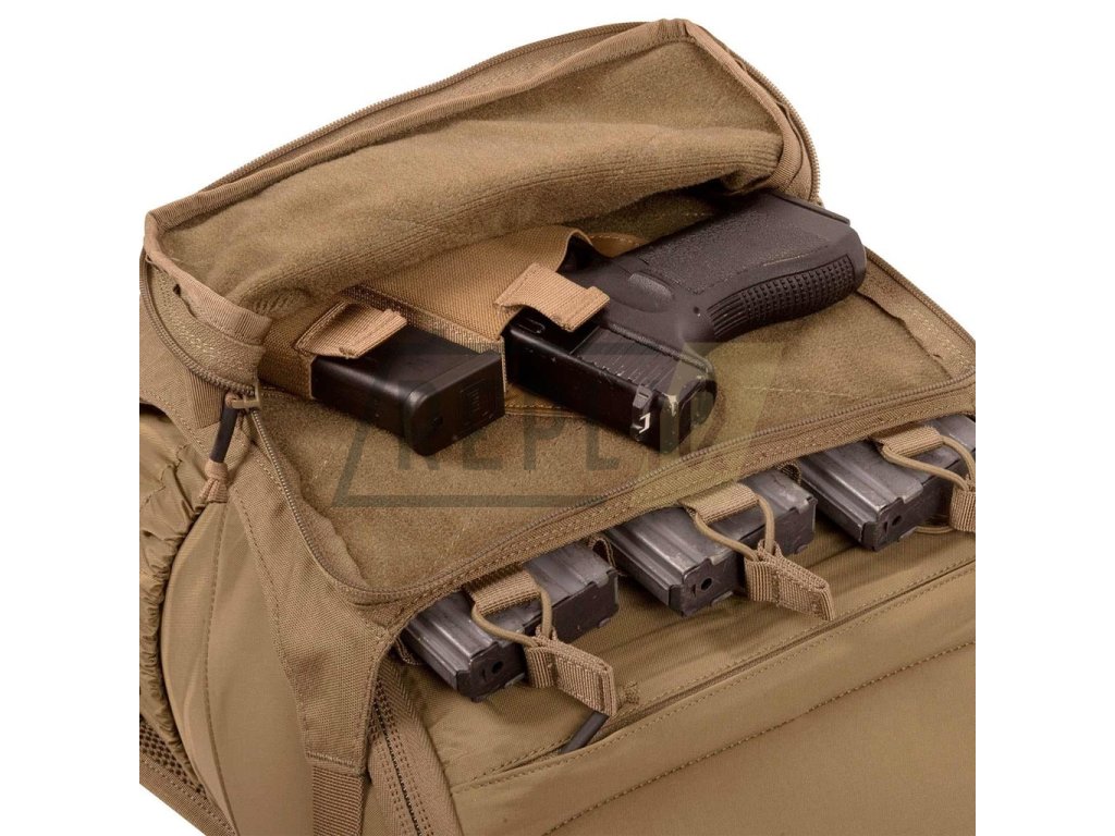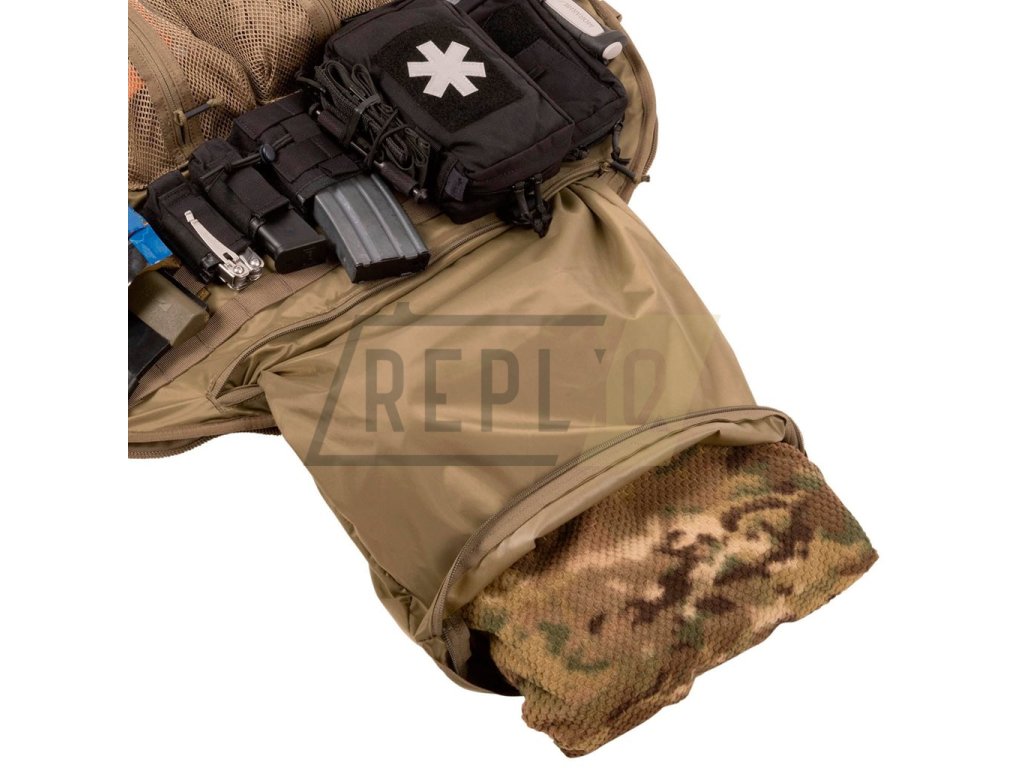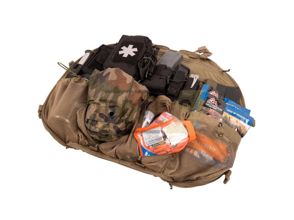 Batoh je vyjímečný i svým odepínatelným předním panelem, který lze v nouzi použít jako samostatnou brašnu. V panelu jsou zabudovány sumky na tři zásobníky standardu AR/AK. Batoh je vybaven i zádovou kapsou, ve které je uložena i podložka na sezení. Bok batohu je vybaven kapsami na uložení čutor či lahví na vodu. Polstrovaná držadla najdete na všech stranách batohu. Vnitřní organizér obsahuje čtyři kapsy se síťovinou, dvě kapsy na zip a dvě s paracordem. Samozřejmostí je pak vnitřní MOLLE vazba na připojení doplňkového vybavení.