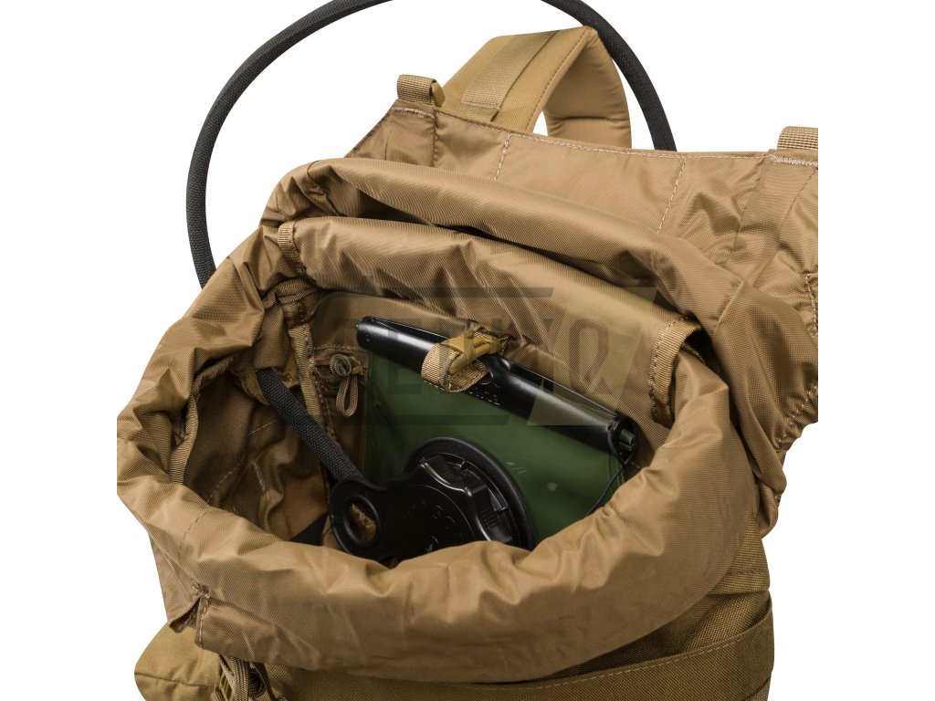 Hlavní úložný prostor má objem 18 litrů a je přístupný přes rukáv se šňůrkou a brzdičkou a velkou chlopeň, která je opatřena VELCRO panelem pro vaše nášivky, malou plochou kapsou přístupnou skrze zip a čtyřmi průvleky na ustrojovací řemínky. Díky těmto průvlakům (které najdete i na dně batohu) budete moci k batohu fixovat další vybavení jako jsou karimatky či spacáky. Vnitřek samotný obsahuje kapsu vhodnou k přenášení menšího vybavení či k fixaci hydratačního vaku, který lze snadno vyvést bokem ven.