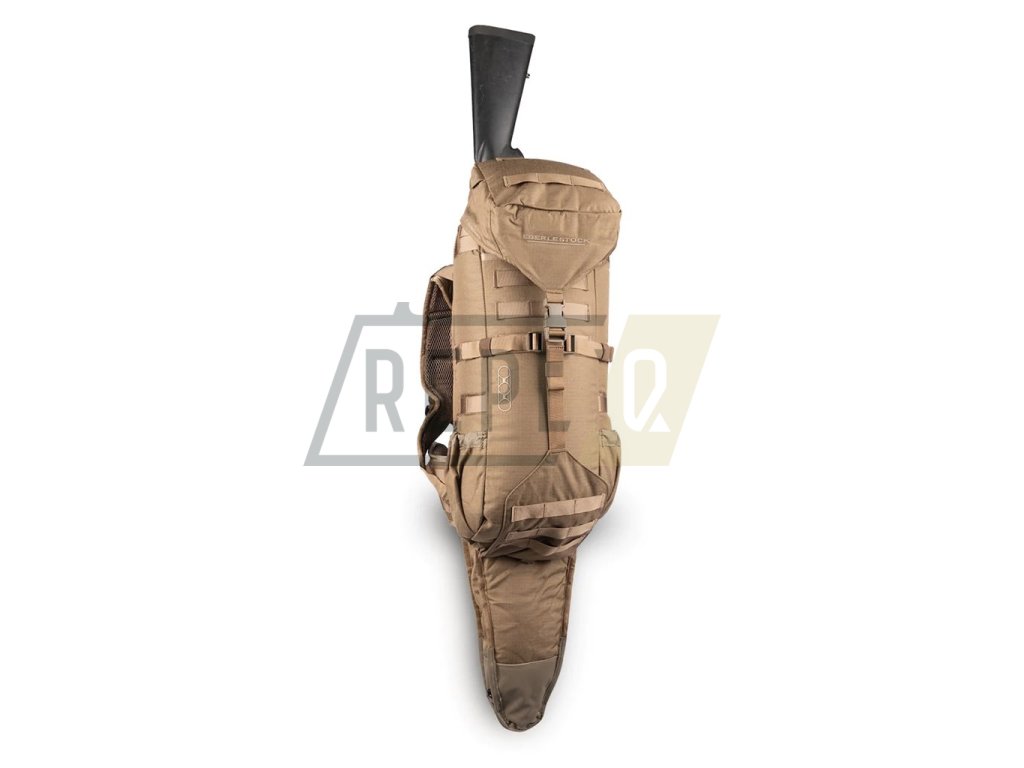 Gunrunner se vyznačuje minimalistickým designem doplněným o patentované pouzdro na pušku. Pouzdro samotné je snadno dostupné, takže budete mít pušku vždy rychle při ruce ať už v žáru boje, tak i v klidu na lovu. V hlavním vnitřním prostoru najdete dostatek úložného prostoru pro většinu vybavení na jednodenní lov, túru či vojenskou akci. Víko batohu je vhodné na vložení vojenských dálkoměrů či menších vysílaček. Vnitřní rukáv je vhodný na vložení hydratačních vaků Eberlestock WX2L a WXP3L. Pro snadné nošení má batoh vertikální i horizontální stahovací popruhy. Boční síťování batohu je uzpůsobené k připojení vaků A3SB což při použití dvou zvýší úložnou kapacitu až o šest litrů.