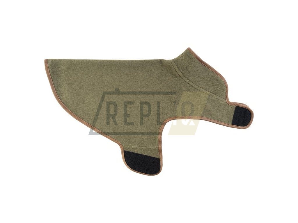 Hřejivá vesta pro psa fixovaná pomocí suchého zipu v oblasti krku a pod hrudníkem. Na její výrobu byl použitý hřejivý polyester fleece o gramáži 300 g/m2. Okraje vesty jsou zesílené pomocí nubukové kůže tak, aby se minimalizovalo tření při pohybu a zároveň byla zvýšena mechanická odolnost produktu.