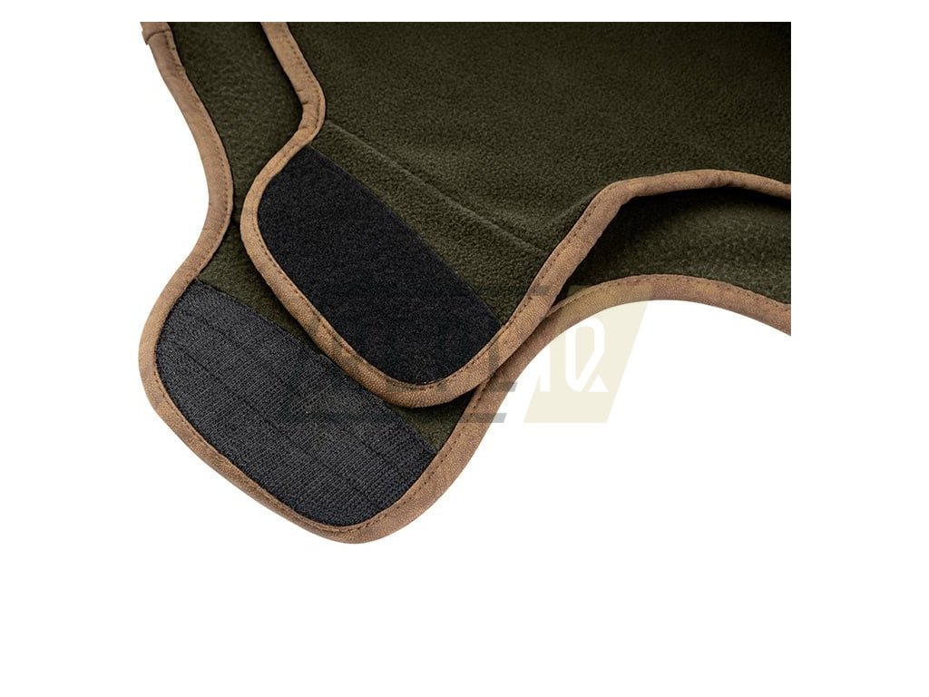 Hřejivá vesta pro psa fixovaná pomocí suchého zipu v oblasti krku a pod hrudníkem. Na její výrobu byl použitý hřejivý polyester fleece o gramáži 300 g/m2. Okraje vesty jsou zesílené pomocí nubukové kůže tak, aby se minimalizovalo tření při pohybu a zároveň byla zvýšena mechanická odolnost produktu.