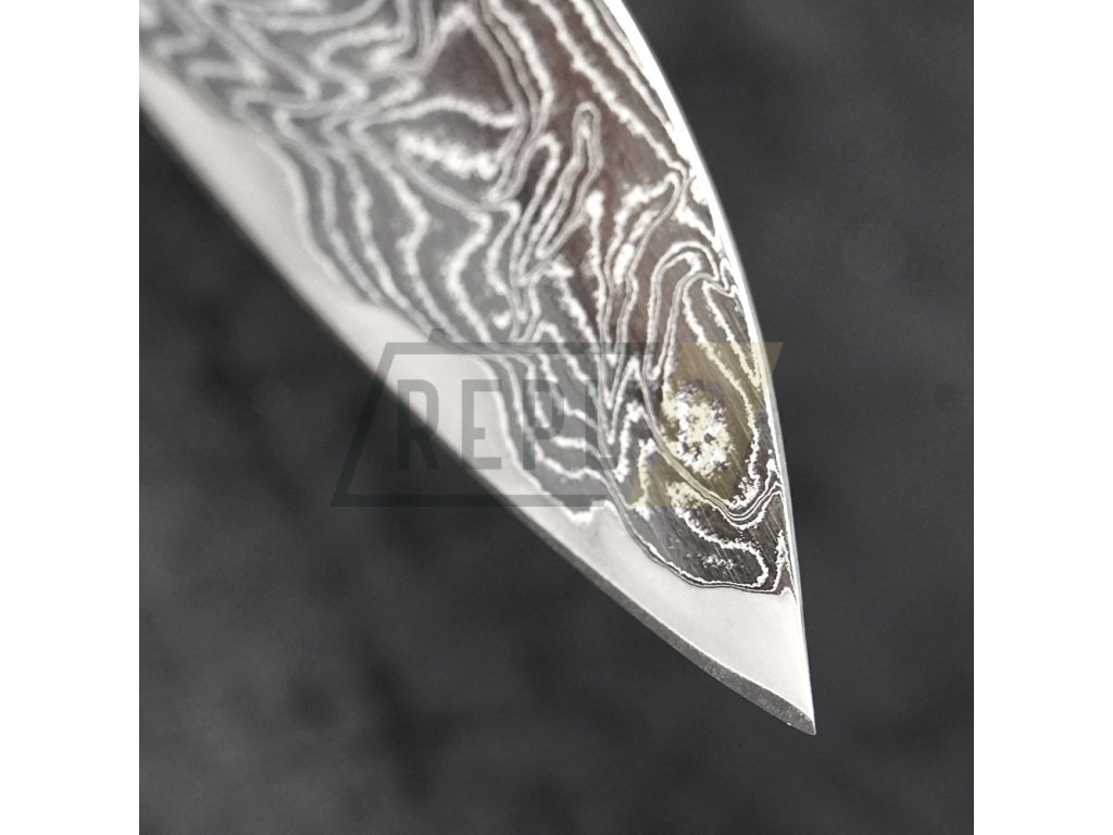 Upozornění Každý nůž je vyroben z přírodních materiálů. Každý kus oceli je originální a nenapodobitelný, proto Váš nůž nemusí vypadat přesně tak jak na fotografii. Nůž, který obdržíte, bude stejně kvalitní a detailně opracovaný, ale může se mírně lišit. |