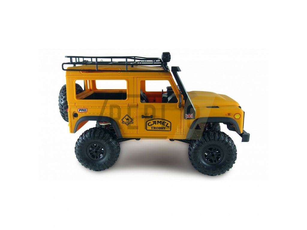 D90 Rock Crawler 1:12, je 2,4 GHz dálkově ovládaný terénní model legendárního off-roadu. D90 je speciálně navržen pro náročné prostředí a jakkoliv drsnou cestu. Model je robustní, odolný a má vynikající jízdní vlastnosti v terénu. Vyznačuje se klasickým vzhledem reprezentativního Defenderu, včetně detailů, které jsou přísně v souladu dle skutečného automobilu. Karoserie vozu je vyrobena z vysoce kvalitního plastu ABS, podvozek z kovových částí s hladkým a čistým povrchem a rámem s vysokou tvrdostí zajišťuje jeho odolnost proti opotřebení a odolnost proti kolizi. Existuje řada možností, jak si užít jízdu po silnici, pláži, trávě, na skalách nebo kdekoliv Vás napadne. To vše připraveno k jízdě ihned po vybalení - RTR.