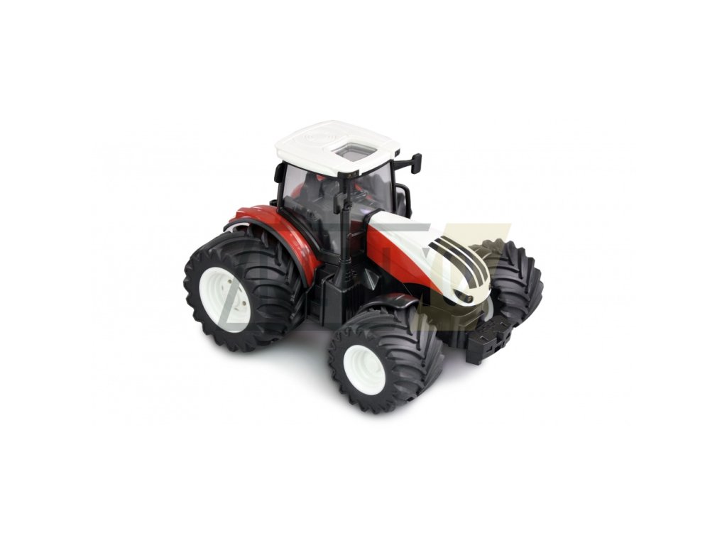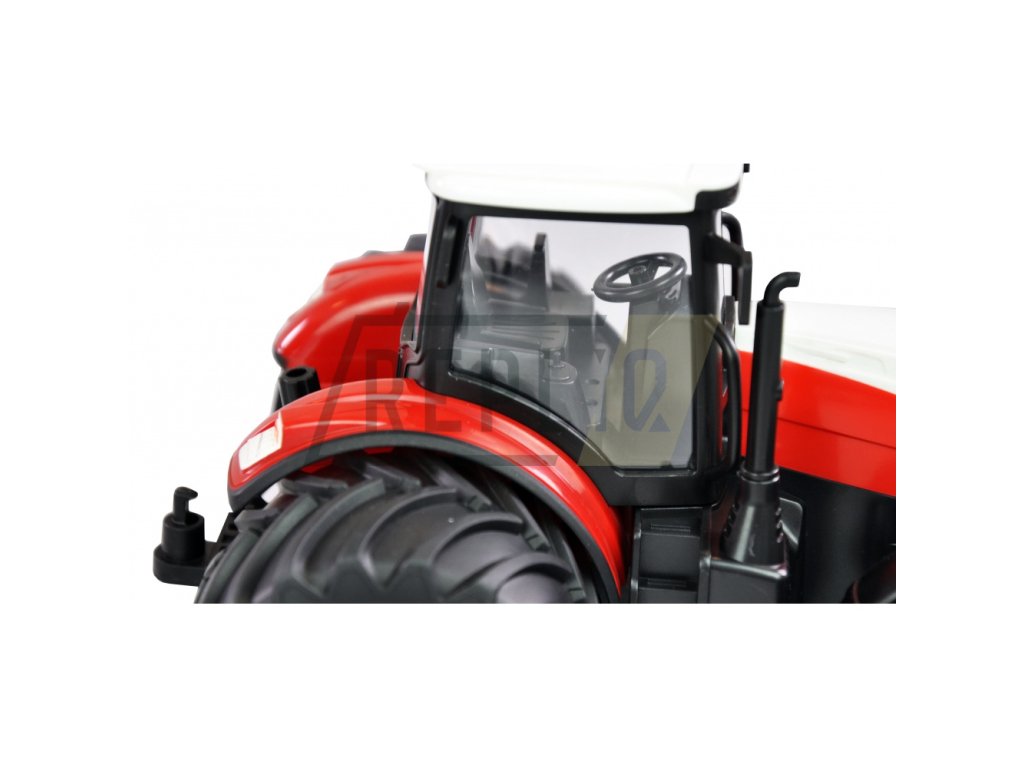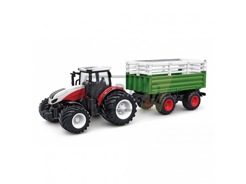 Velice pěkně zpracovaný RC model traktoru s přívěsem na dálkové ovládání. Provedení modelu je opravdu krásné, předností modelu jsou také velká široká kola, přední světla a zvuk motoru. Další přednost je pomalá jízda, zpřevodováno do síly tak jak to u traktoru má být! Slušná vydrž akumulátoru umožňuje jízdu až 35 minut. Akumulátor v traktoru je měnitelný. Ovladač modelu nemá anténu ani páčky a to je dobré, protože děti nemají co ulomit.
