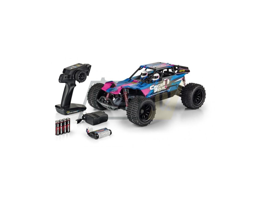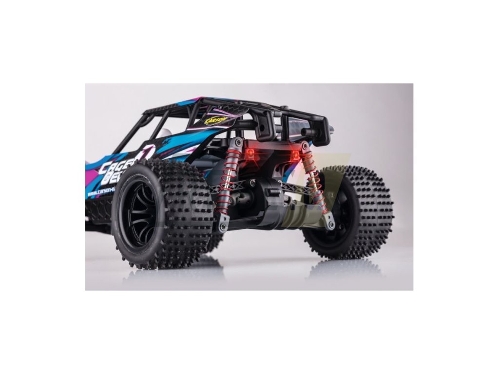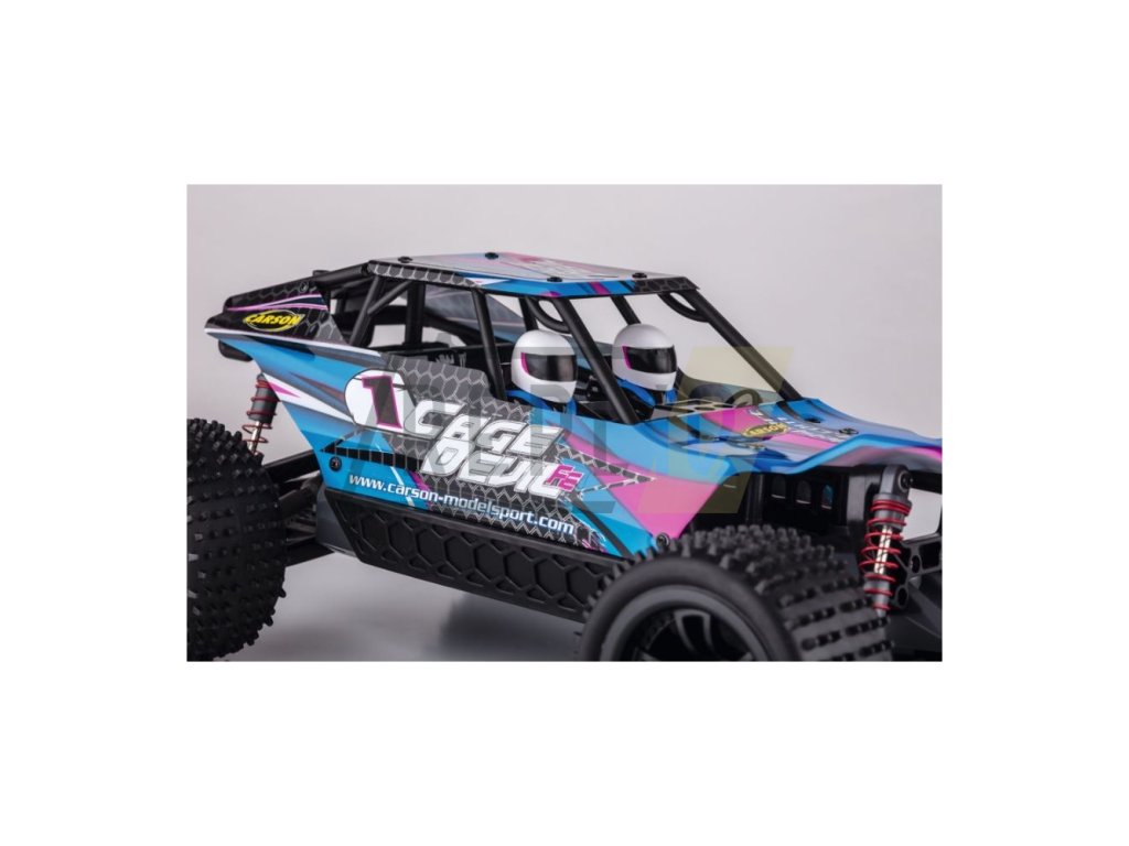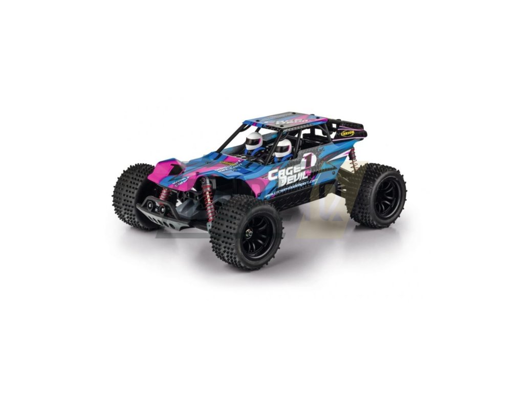 Cage Devil je rychlý teréňák z řady Fast-Entry společnosti CARSON Modelsport, který může dosáhnout rychlosti 35 km / h. Dálkové ovládání 2,4 GHz. Nově navržený podvozek je pro jakýkoliv drsný terén. Elektronická jednotka chráněná proti stříkající vodě umožňuje jízdu i na mokré zemi. Zajímavým prvkem je propracovaný design karoserie s čísly řidičů a předními a zadními LED diodami. Vysoce přilnavé, terénní pneumatiky.Pohon zadních kol. Vysoce výkonný akumulátor Liion. Baterii lze upevnit do modelu zespodu, takže není nutné odstraňovat plášť karoserie. Balení 100% RTR včetně všech potřebných baterií.