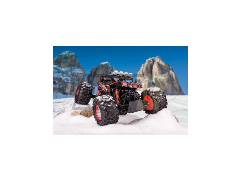 Crawler The Beast od firmy Carson je vybaven pevnou nápravou s oddělenými hnacími hřídeli a vynikajícím kloubovým extrémně výkyvným spojením, který je schopen zdolat prakticky vše. K tomu napomáhají i měkká kola s vysokou přilnavostí . Dva motory a dodaný akumulátor poskytují výkonný pohon. Stylově navržený, robustní polykarbonátová karoserie. Dálkové ovládání 2.4 GHz. Balení 100% RTR - balení obsahuje vše potřebné včetně baterií.