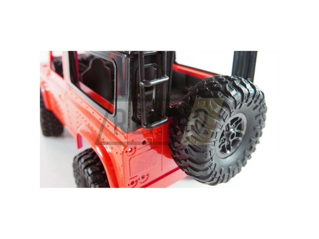 D90 Rock Crawler 1:12, je 2,4 GHz dálkově ovládaný terénní model legendárního off-roadu. D90 je speciálně navržen pro náročné prostředí a jakkoliv drsnou cestu. Model je robustní, odolný a má vynikající jízdní vlastnosti v terénu. Vyznačuje se klasickým vzhledem reprezentativního Defenderu, včetně detailů, které jsou přísně v souladu dle skutečného automobilu. Karoserie vozu je vyrobena z vysoce kvalitního plastu ABS, podvozek z kovových částí s hladkým a čistým povrchem a rámem s vysokou tvrdostí zajišťuje jeho odolnost proti opotřebení a odolnost proti kolizi. Existuje řada možností, jak si užít jízdu po silnici, pláži, trávě, na skalách nebo kdekoliv Vás napadne. To vše připraveno k jízdě ihned po vybalení - RTR.
