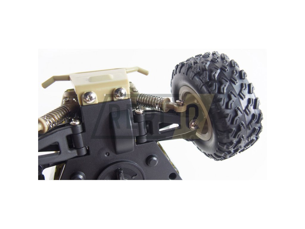 Maximální dosažitelná rychlost je asi 23 km / h. Ovládání přes 2,4 GHz vysílač. Model má pohon 4x4. Navíc je odolný proti stříkající vodě, a proto je vhodný pro venkovní použití do téměř jakéhokoliv terénu. RTR balení. Díky jednoduchému ovládání je vhodné pro začátečníky.