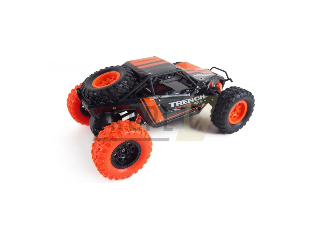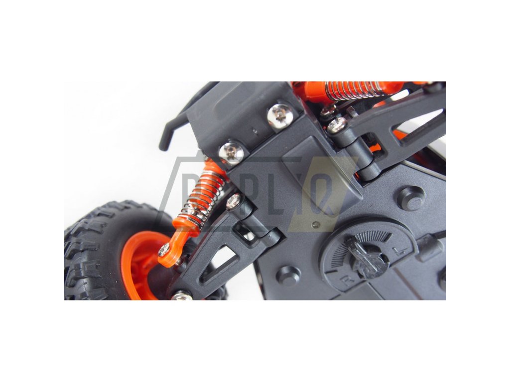 Maximální dosažitelná rychlost je asi 23 km / h. Ovládání přes 2,4 GHz vysílač. Model má pohon 4x4. Navíc je odolný proti stříkající vodě, a proto je vhodný pro venkovní použití do téměř jakéhokoliv terénu. RTR balení. Díky jednoduchému ovládání je vhodné pro začátečníky.