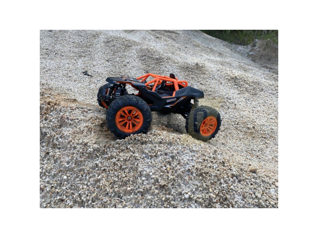 FUN RACER má plně proporcionální ovládání, pracuje na 2,4 GHz a je ideální pro začátečníky i pokročilé uživatele. Pneumatiky jsou vyrobeny z pravé gumy zajišťují enormní přilnavost k široké škále povrchů nejen v terénu. Model díky svému náhonu 4 WD má model neskutečně agilní a přesné ovládání a dokáže vyvinout rychlost až 35 km/h. FUN RACER je celoodpružený a má kuličková ložiska pro co nejhladší jízdu. Dále je ve výbavě karoserie z Lexanu, což je téměř nerozbitelný plast, a pomyslnou třešničkou na dortu je voděodolnost v certifikaci IPx4. Stačí nabít baterii, vložit baterie do ovladače a můžete jít testovat vaše dovednosti a terén. Je plně smontován a dodává se s již s nainstalovanou a připojenou elektronikou.