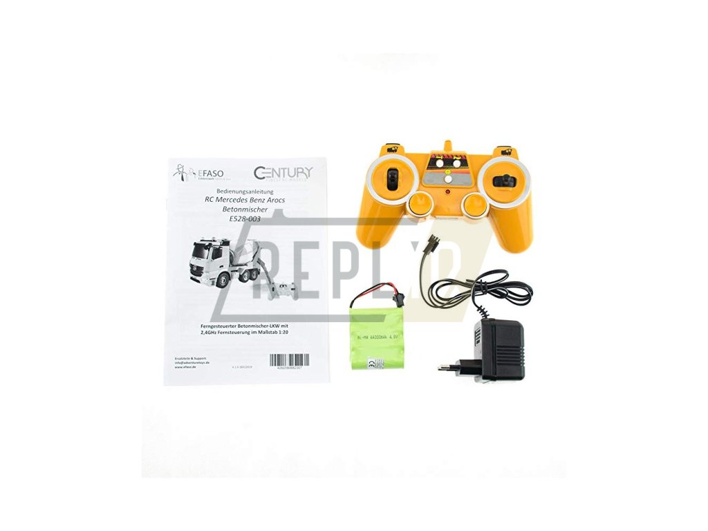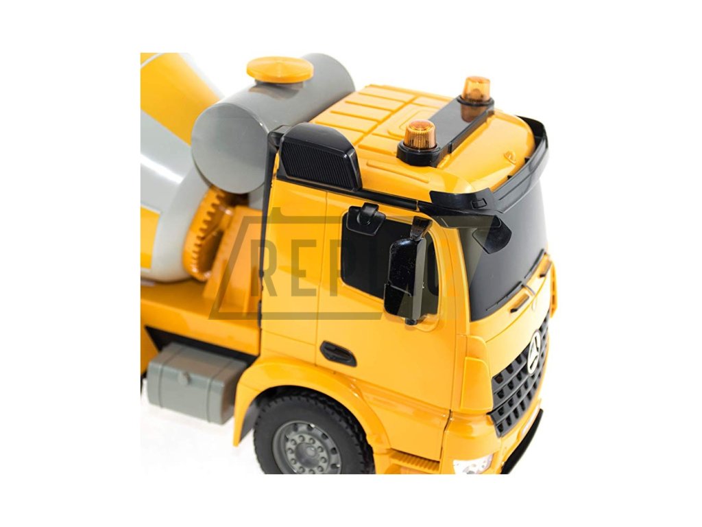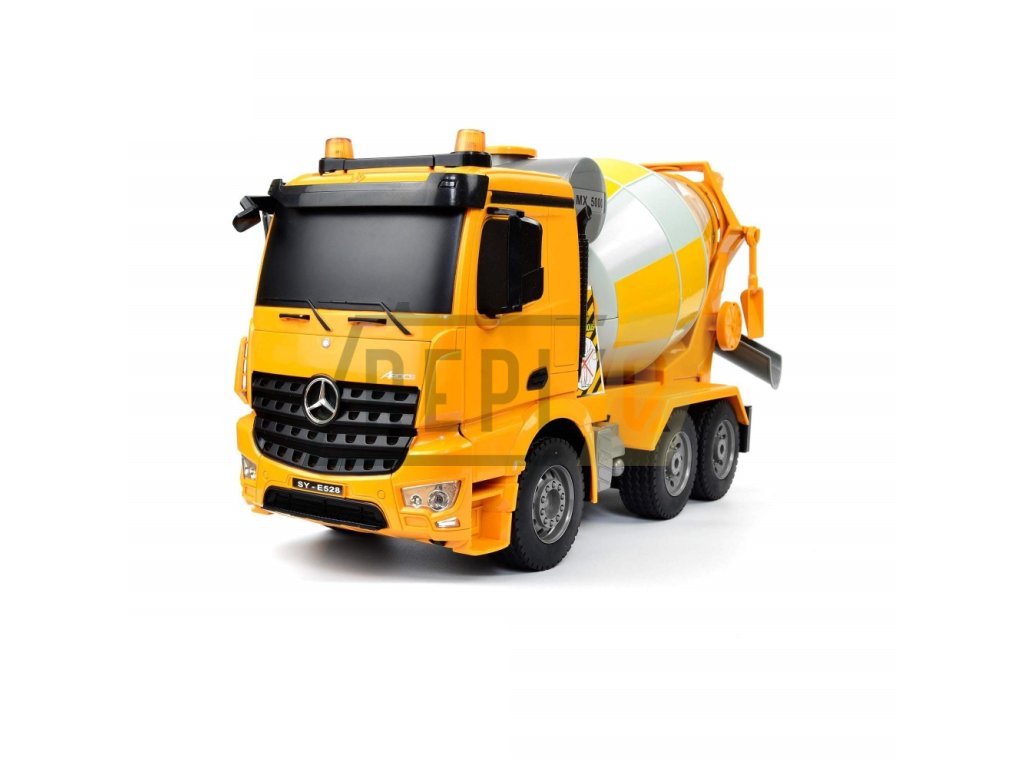 Licencovaný model Mercedes-Benz Arocs CEMENT MIXER 4WD je do detailu propracovaný RC model "mixu", vyrobený v měřítku 1:20, který pracuje na frekvenci 2.4 GHz, jede vpřed, vzad a zatáčí jako skutečné auto. Hlavní předností je funkční míchačka, kterou je možno ovládat z dálkového ovladače. Další velkou předností je zvukový modul, který dokáže simulovat velkou spoustu zvuků auta, jako je start motoru, zrychlení, klakson a houkačky. Samozřejmně je možné všechny tyto zvuky vypnout. Model také disponuje režimem DEMO, jenž Vám představí všechny funkce modelu, a také funkce AUTO-vypnutí, která vůz zcela vypne při nečinnosti. U modelu je možnost i jednoduchého naprogramování. Radost jistě také udělá LED osvětlení a pravé gumové pneumatiky, díky kterým má auto skvělou přilnavost. Skvělý vůz na staveniště, stačí jen vyrazit.