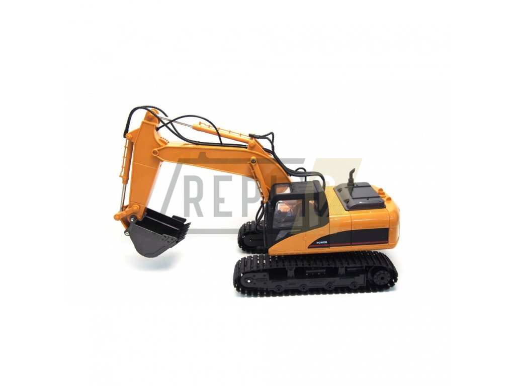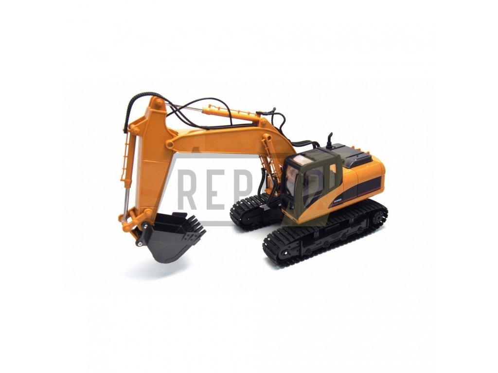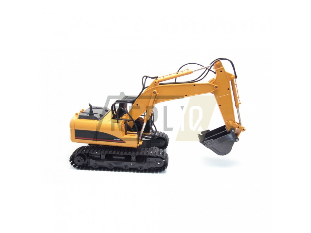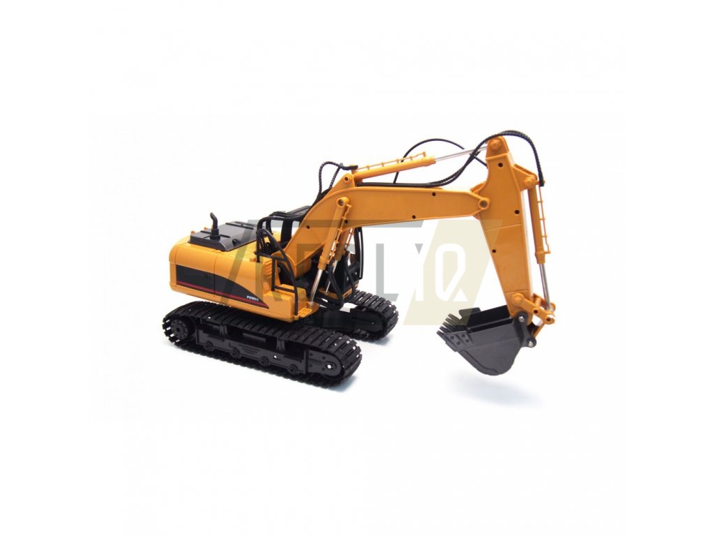 Skvělý pásový bagr s kovovou lžící v měřítku 1:14. Vysoce kvalitní hydraulický bagr s pevným kovovou lžící, která umocňuje žážitek z bagrování. Plně vybavený mnoha funkcemi. Praktické dálkové ovládání 2,4 GHz, gumové pásy, realistické zvuky, akumulátor NiMH 7,2 V/400 mAh. Tento bagr je skutečným pomocníkem a pracantem na každé stavbě! Je určený pro kopání výkopů a přesun zeminy.
