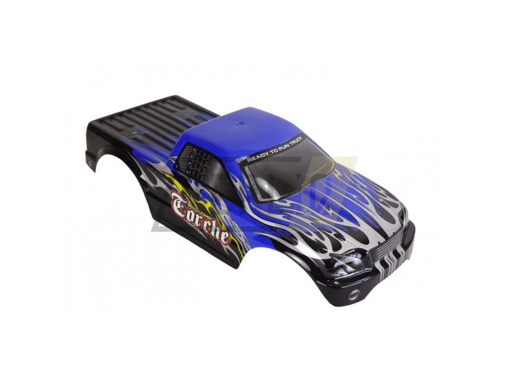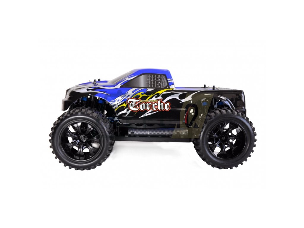 TORCHE MonsterTruck 4WD 1:10 není žádné tintítko ani ořezávátko. Velikost přesahující 430 mm je toho jasným důkazem, stejně jako možná maximální rychlost 30+ km/h. Jedná se o model pro zkušenější řidiče, ale díky jednoduchému a intuitivnímu ovládání je vhodný i pro začátečníky. Hlavním tahákem TORCHE je plně proporcionální jízda s velmi silným brushed (kartáčovým) motorem který pohání všechna 4 kola. To ale zdaleka není vše, co model nabízí, neméně zajímavé jsou hliníkové olejové tlumiče, které v kombinaci s kovovými kuličkovými ložisky a superelastickými pneumatikami zvládnou odpružit jakoukoliv nerovnost a zajistit bezkonkurenční přilnavost i v těch nejvyšších rychlostech. Výbornou výbavu završuje karoserie z Lexanu, díky kterému se nemusíte bát občasných kolizí. Model je dodáván v edici RTR a stačí jen dokoupit baterie do ovladače, nabít a vyrazit na cestu.