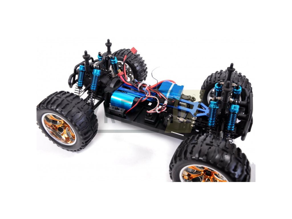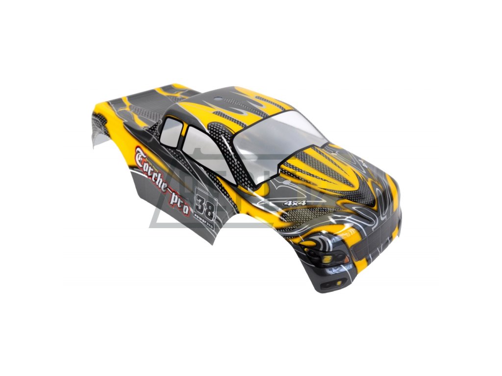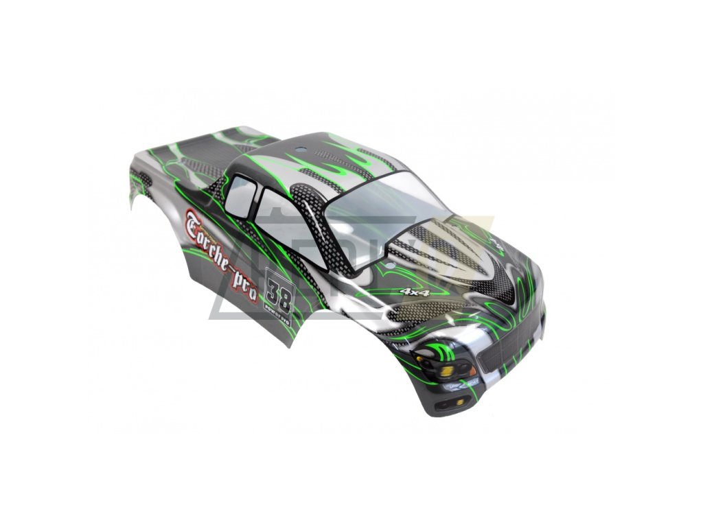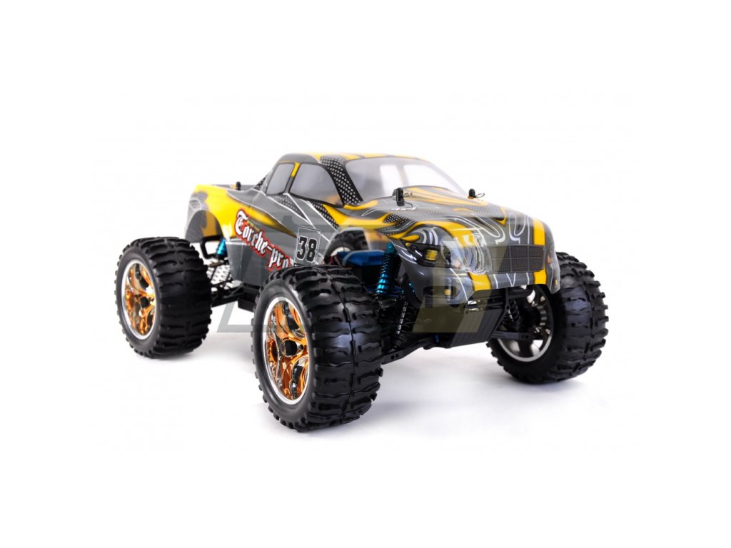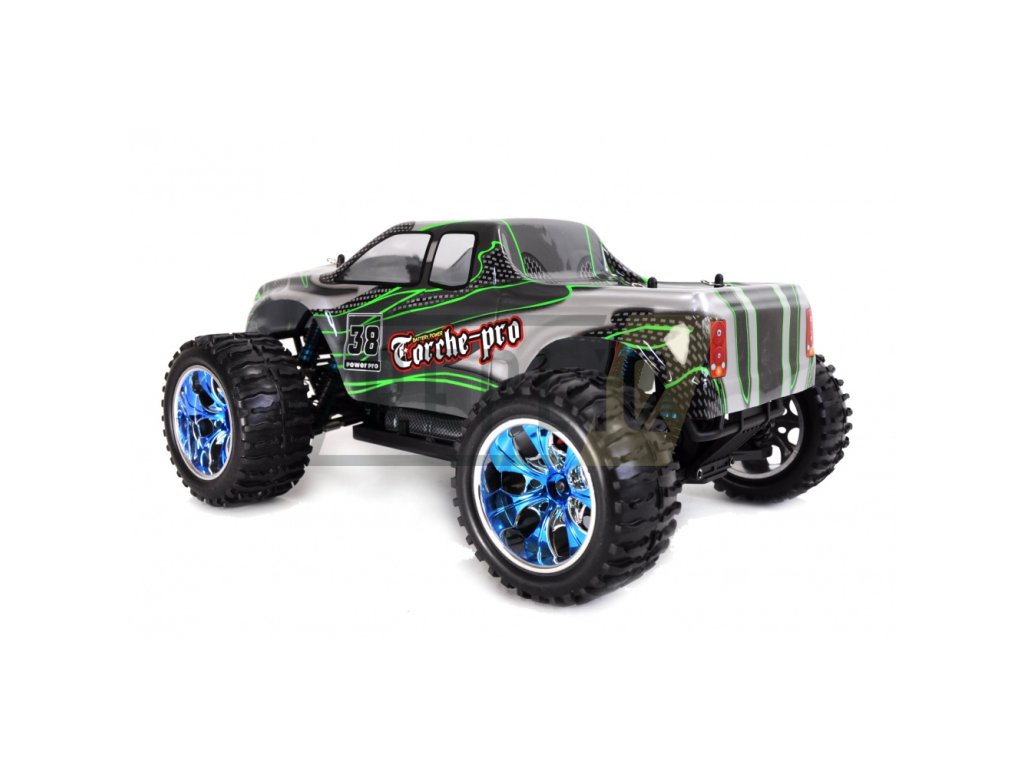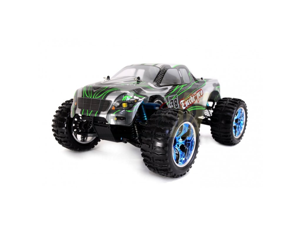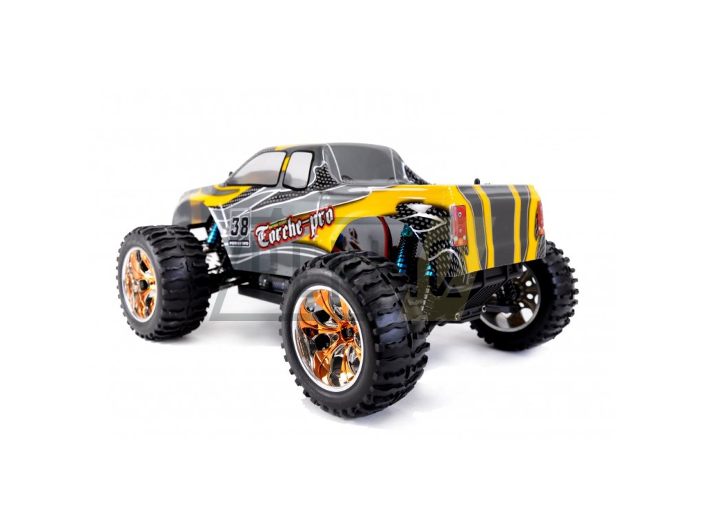 TORCHE PRO MONSTER TRUCK Brushless 4WD 1:10 není žádné tintítko ani ořezávátko. Velikost přesahující 400 mm je toho jasným důkazem, stejně jako možná maximální rychlost 65+ km/h. Jedná se o model pro zkušenější řidiče, ale díky jednoduchému a intuitivnímu ovládání je vhodný i pro začátečníky. Hlavním tahákem TORCHE PRO MONSTER TRUCK Brushless je plně proporcionální jízda s velmi silným brushless (bezkartáčovým) motorem typu 3300KV, který pohání všechna 4 kola. Tomu dopomáhají ocelové převody i ocelové diferenciály vpředu i vzadu. To ale zdaleka není vše, co model nabízí, neméně zajímavé je plně nastavitelný podvozek s 8 olejovými ALU tlumiči, které v kombinaci s kovovými kuličkovými ložisky a super elastickými pneumatikami zvládnou odpružit jakoukoliv nerovnost a zajistit bezkonkurenční přilnavost i v těch nejvyšších rychlostech. O plynulé zatáčení se stará servo SP6001 se silou 6 kg a dobou polohování 0,18 s. Výbornou výbavu završuje karoserie z Lexanu, díky kterému se nemusíte bát občasných kolizí. Model je dodáván v edici RTR a stačí jen dokoupit baterie do ovladače, nabít a vyrazit na cestu.