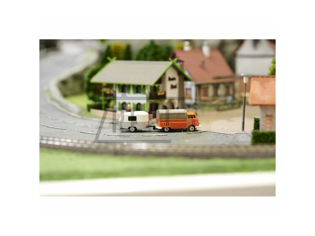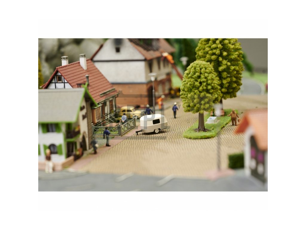 Představujeme vám 1:87 Kempingový přívěs vč. přípojného zařízení - dokonalého společníka pro vaše modelové železniční a auto modelářské dobrodružství! S tímto stylovým a vysoce detailním kempingovým přívěsem přinášíme kousek dovolenkové atmosféry přímo na vaši modelovou dráhu.