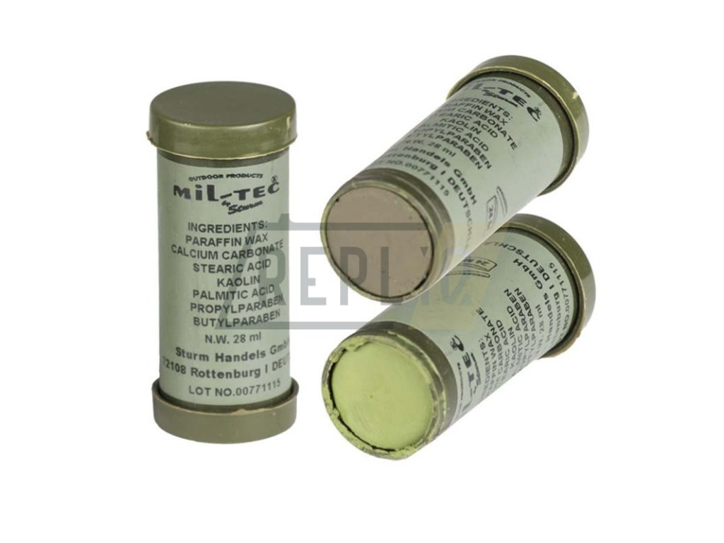 Kamuflážní barvy v tubě - oboustranné dvoubarevné provedení. Snadná aplikace, snadné odstranění, poměrně dlouhá výdrž. Obsah 28 ml.