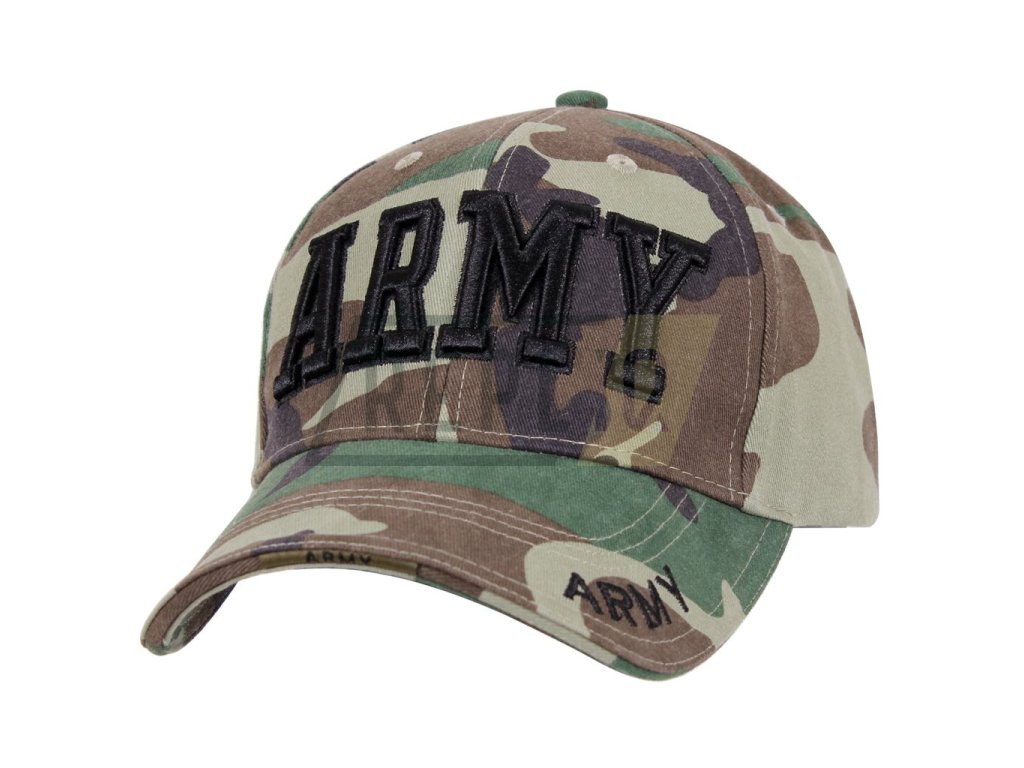 Nízkoprofilová kšiltovka s vyšitým plastickým 3D nápisem ARMY. Menší vyšité nápisy ARMY na kšiltu a na hraně kšiltu. Kvalita výšivek je u firmy Rothco tradičně na velmi vysoké úrovni. Sendvičový pevný kšilt. Univerzální nastavitelná velikost pomocí pásku na suchý zip.
