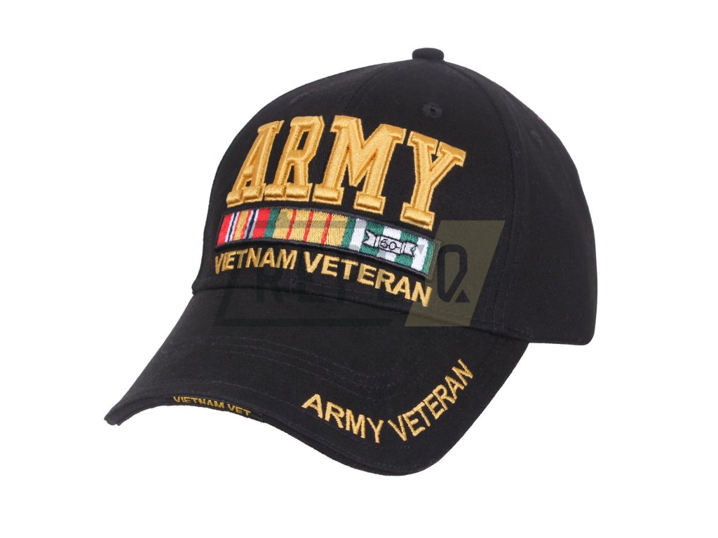 Pohodlná nízkoprofilová baseballka z česané bavlny s nápisem Army Veteran Vietnam a s vyšitými stužkami. Menší nápis na kšiltu Army Veteran a na hraně kšiltu nápis Army Vet.