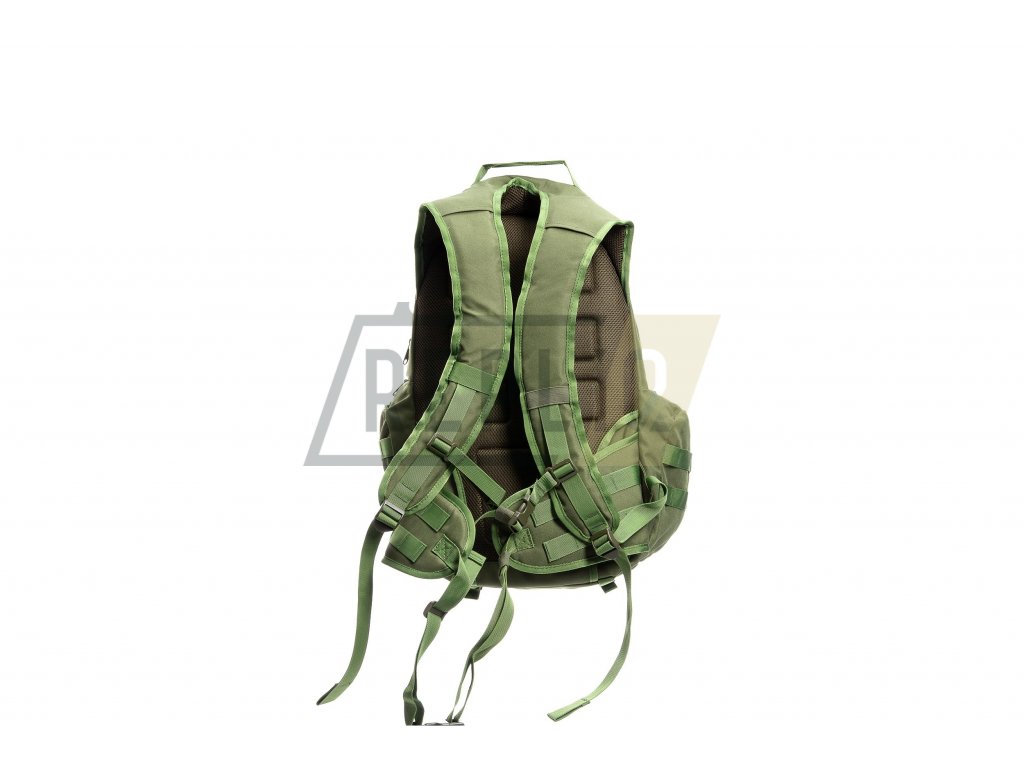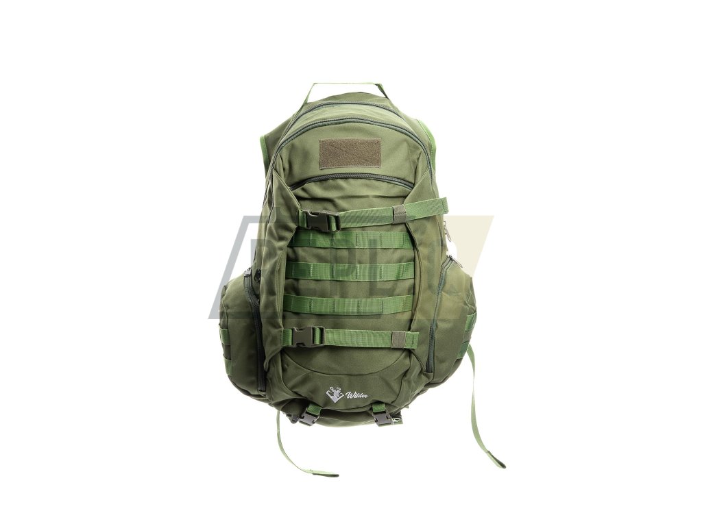 Batoh Wildee Hunting Green má dvoukomorovou konstrukci. Hlavní komora je doplněna o jednu přihrádku se stahovacím lemem. Přední komora je vybavena síťovanou kapsou se zipem na doklady. Na přední straně batohu nalezneme úchytný systém a jednu malou kapsu na drobné předměty. Užitečným doplňkem je pásek suchého zipu pro jmenovku nebo jinou libovolnou nášivku. Na obou bocích jsou přišity síťované kapsy na láhev.