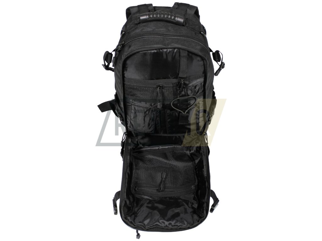 Batoh má dvě hlavní komory. větší zadní a menší přední. V přední komoře naleznete organizér s karabinou a několika kapsami na různé vybavení. Naproti organizéru můžete využít velké síťované kapsy uzavírané zipem. Větší zadní komora obsahuje kapsu na hydratační vak, jehož vyvedení naleznete na zadní straně mezi nosnými popruhy.