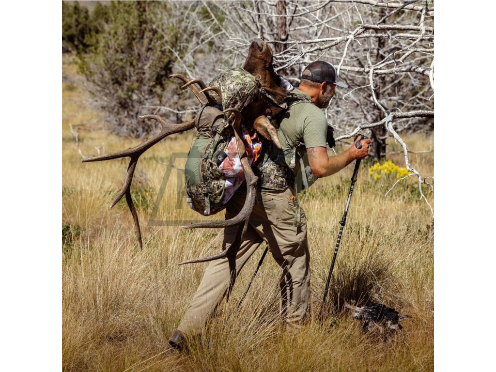 Unikátní lovecký batoh, který umožňuje snadné přenášení těžkých nákladů díky možnosti separace batohu od nosného systému. Disponuje integrovaným pouzdrem na dlouhou zbraň a prostorným, výškově nastavitelným víkem. Na výrobu batohu byl použit speciální mikroflísový materiál, který je nešustivý a velmi odolný.