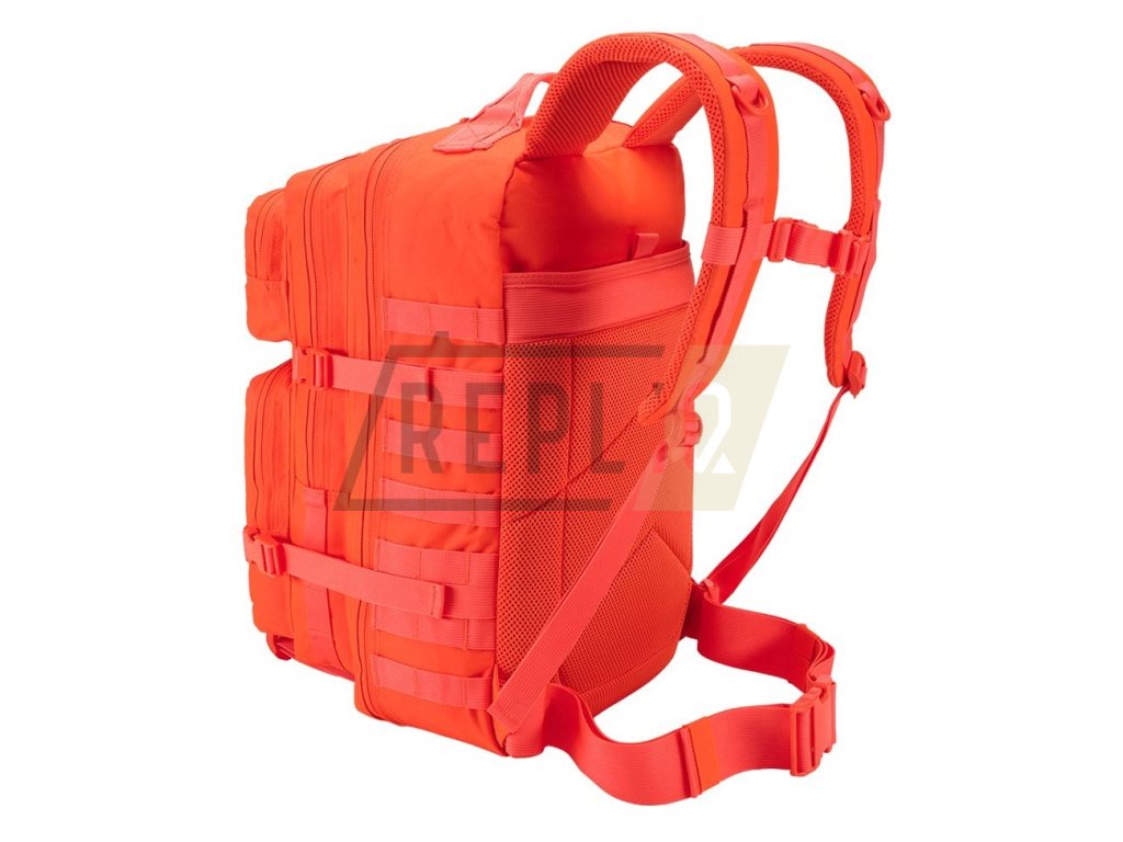 Záda batohu jsou lehce polstrovaná, obsahují kapsu vhodnou k vložení hydratačního vaku a v horní části jsou opatřena madlem pro snadné přenášení. Nosné popruhy jsou výškově nastavitelné, anatomicky tvarované, polstrované, opatřené 3D síťovinou a elastickým hrudním popruhem spínaným plastovou fastex přezkou. Bederák je jednoduchý a také spínaný fastex přezkou. Na bocích batohu se nachází široká MOLLE/PALS vazba sloužící k připevnění kompatibilních sumek a dalšího vybavení. Kromě vazby se na boku nachází i dvojice kompresních popruhů.