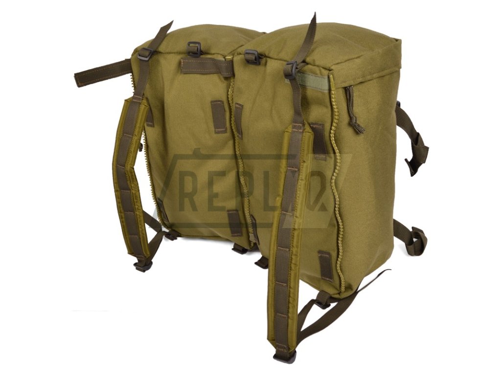 Samostatně může jedna kapsa sloužit jako kompaktní batoh (dodávají se včetně odepínatelných polstrovaných popruhů), sepnutím dvou kapes získáte větší 20litrový batoh.