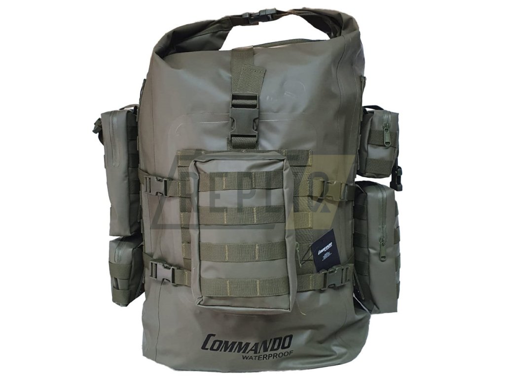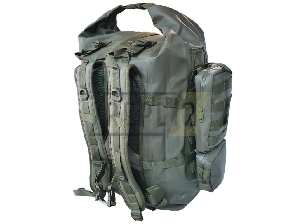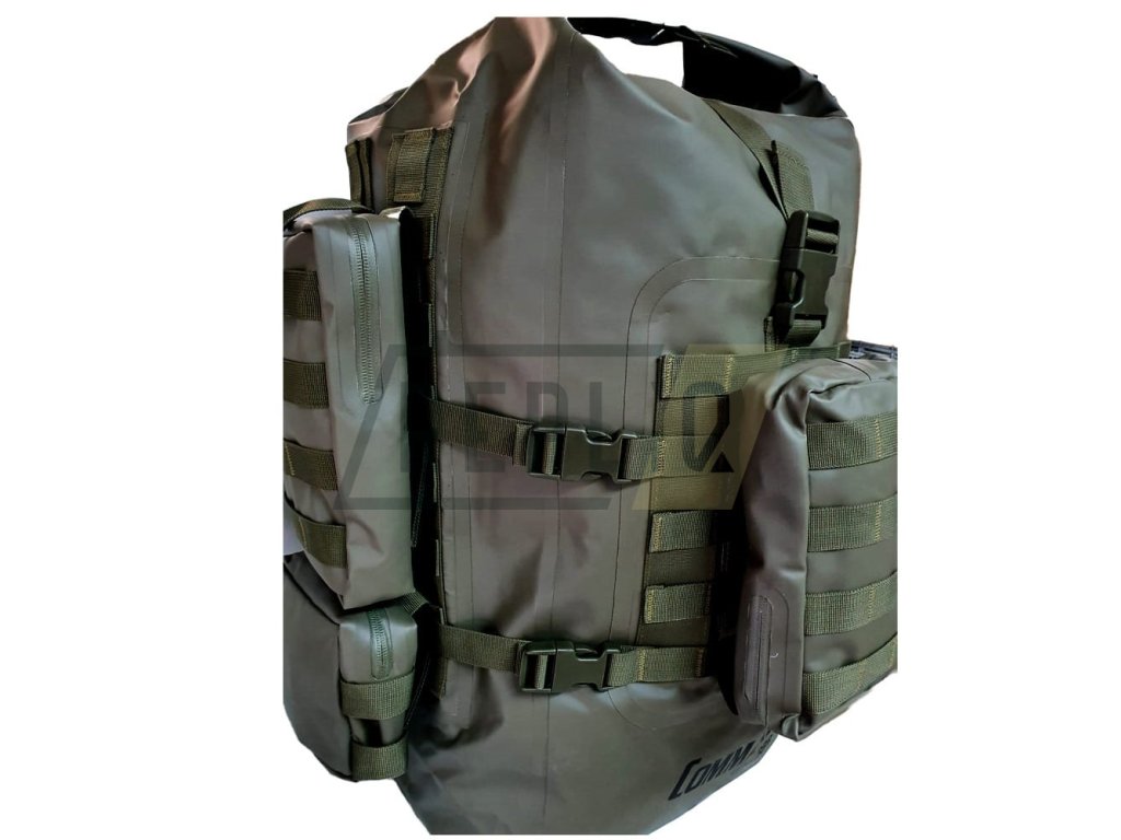 Nepromokavý batoh vyrobený z odolné plachtoviny. K batohu je dodáváno celkem pět MOLLE/PALS kompatibilních kapes, které můžete snadno odepnout a používat samostatně.