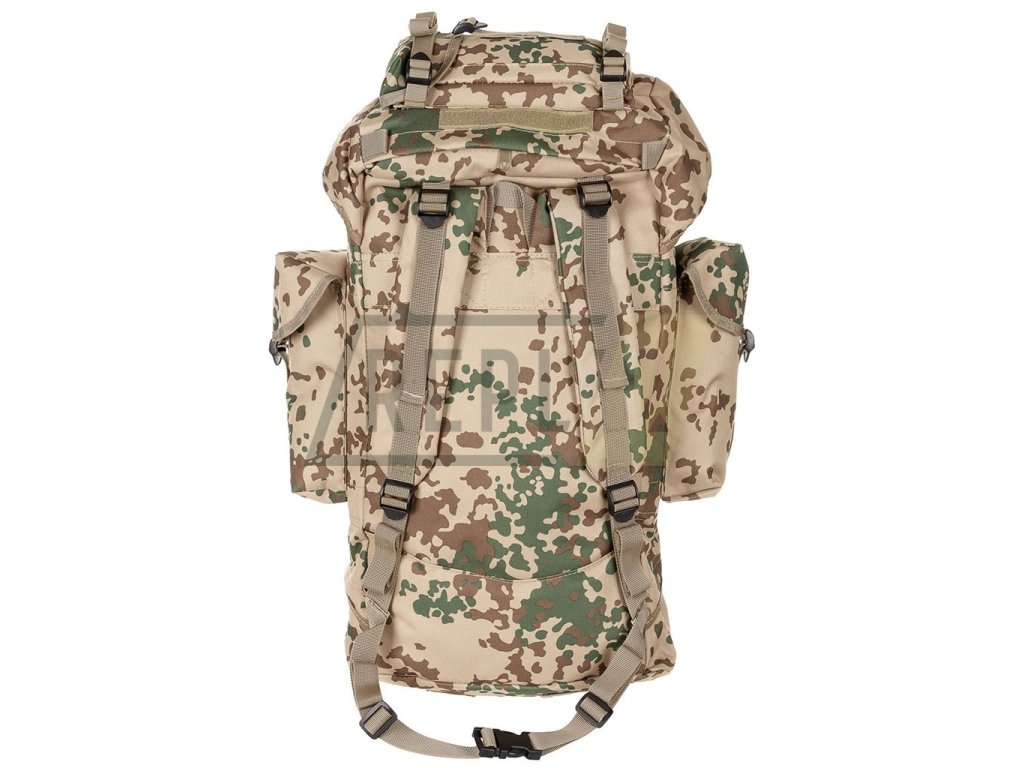 Replika bojového batohu BW, dvoukomorové provední, polstrované ramenní popruhy, dvě vnitřní oddělení, dvě velké postranní kapsy.