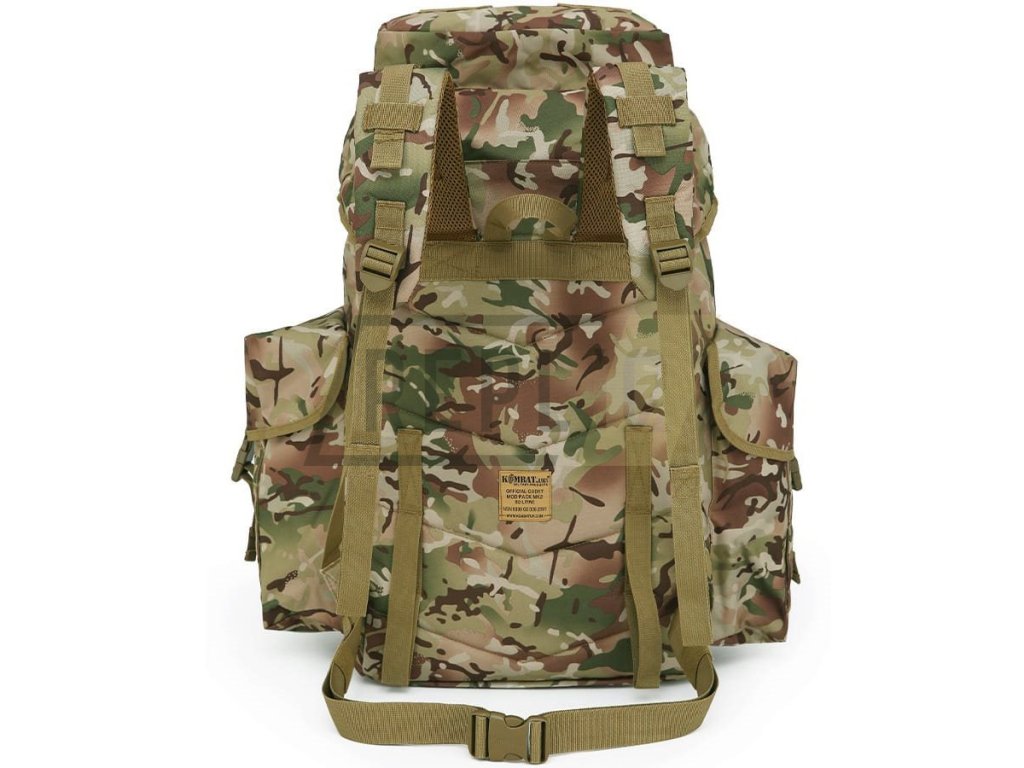 Nosné popruhy jsou výškově nastavitelné a bohatě polstrované. Záda jsou také polstrována a v horní části opatřena látkovým madlem. Bederák je tvořený nastavitelným popruhem a spínaný pomocí plastové přezky. Na bocích se nacházejí kapsy s objemem deset litrů, které se zavírají pomocí chlopně s plastovou přezkou. Víko disponuje VELCRO panelem pro vaše nášivky se suchým zipem, čtyřmi průvleky pro ustrojovací řemínky a dvě kapsy uzavírané zipem. Na čelní straně naleznete šest řad MOLLE/PALS vazby, která je využitelná k fixaci dodatečného vybavení jako jsou sumky či pouzdra.