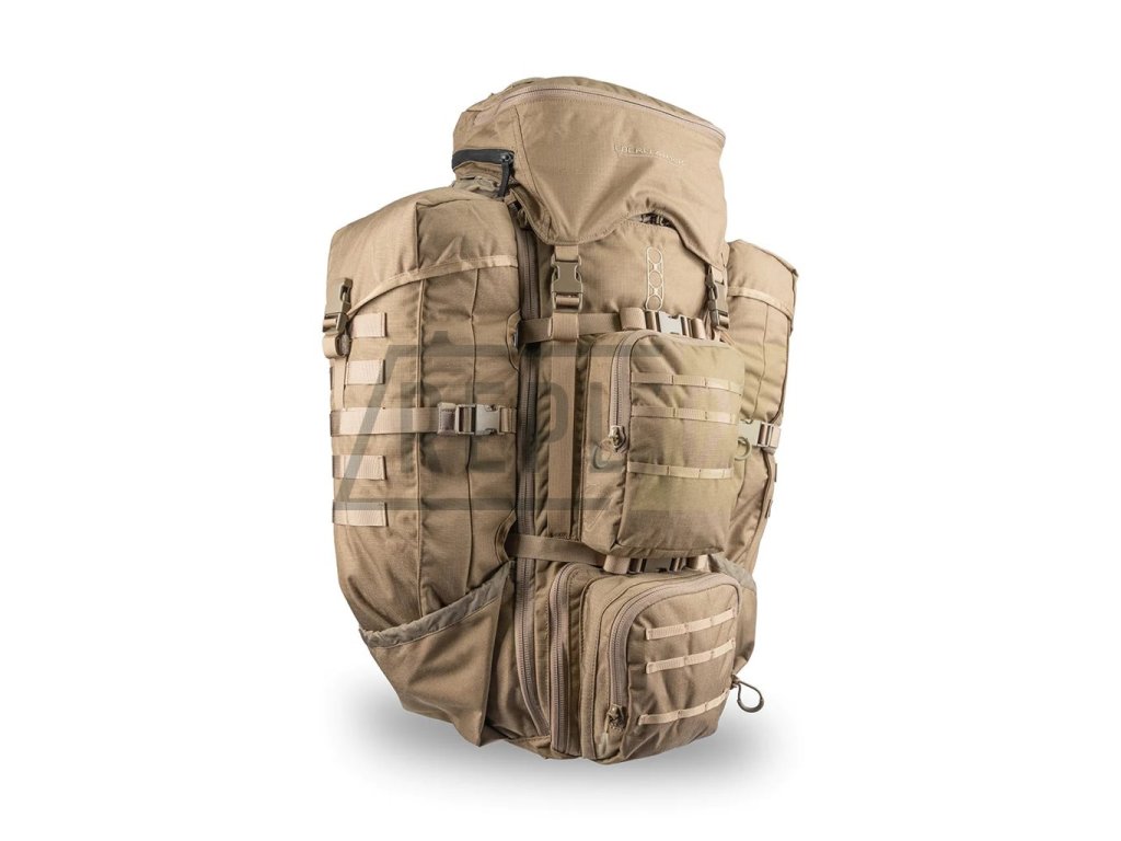 Na přední straně naleznete dvojici menších kapes s MOLLE vazbou, velikostně vhodných k uložení lékarničky či jiného menšího vybavení. Do hlavní úložné kapsy se dostanete srkze dvoucestný zip, popřípadě skrze klasické horní plnění. Horní plnění zakrývá odnímatelné "plovoucí" víko, které se dá výškově nastavit podle množství vloženého vybavení. V hlavním oddělení naleznete kapsu na vložení hydratačního vaku do tří litrů objemu. Uvnitř naleznete celkem čtyři kompresní popruhy ideální na fixaci objemné výbavy. Do zadní, "duté" části batohu můžete vložit pouzdra na dlouhé zbraně od značky Eberlestock.
