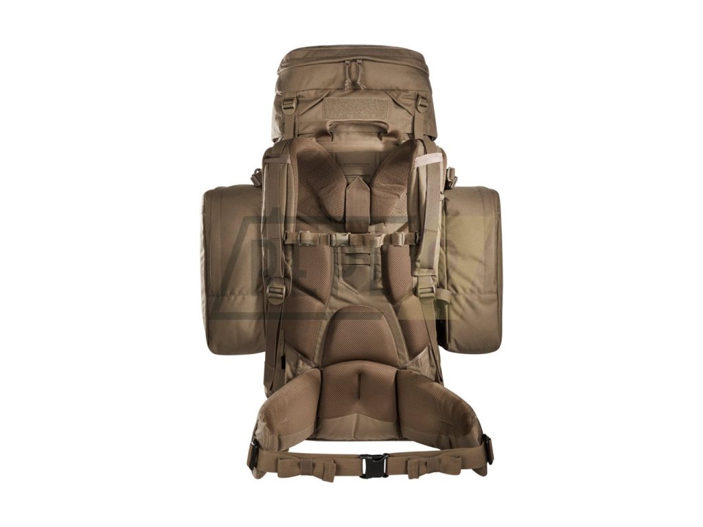Velký vojenský batoh s horním a dvěma čelními vstupy, pohodlným nosným systémem, odnímatelnými vnějšími kapsami a modulární vazbou.