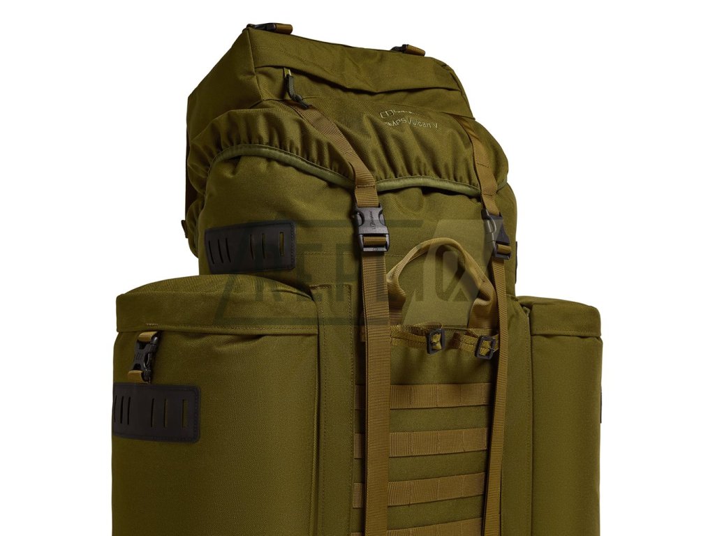 Vulcan V - pátá generace léty prověřeného batohu zavedeného v několika evropských armádách. Jednoduchý, robustní design a odolné materiály zajišťují dlouhou životnost i v náročných podmínkách vojenského užití. Odepínací boční kapsy a kompatibilita s příslušenstvím z kolekce MMPS umožňuje batoh přizpůsobit konkrétním potřebám uživatele či požadavkům mise.