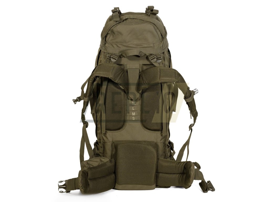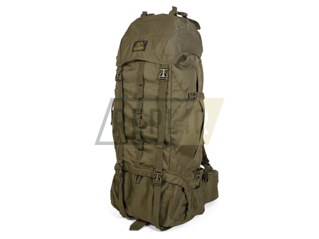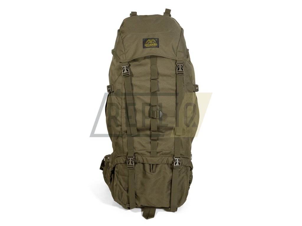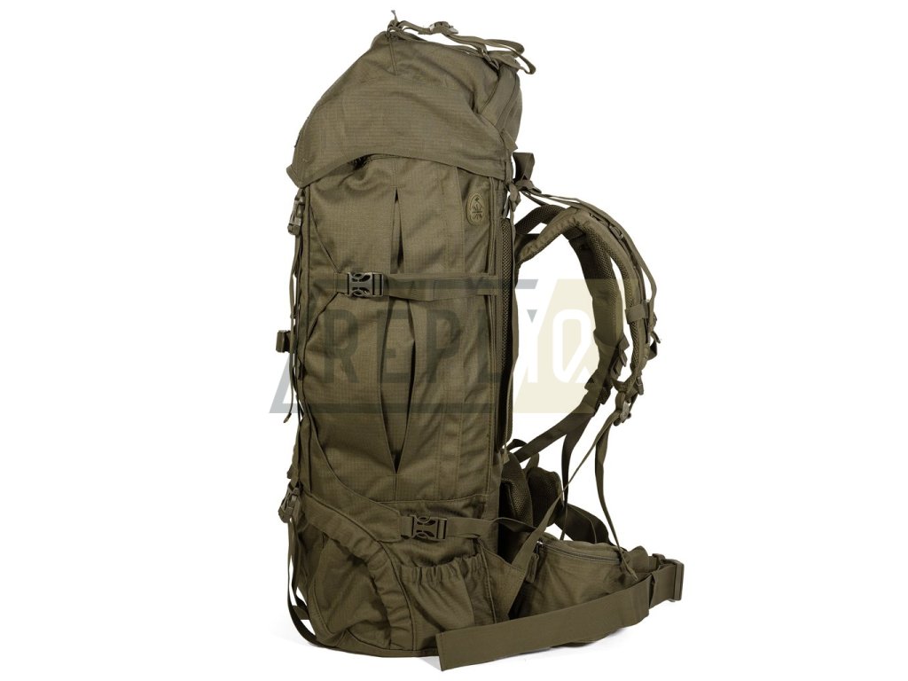 Expediční dvoukomorový batoh s horním a spodním plněním. Horní vstup je řešen výškově nastavitelným víkem s prostornou vnější i vnitřní kapsou a popruhy pro přichycení výstroje. Spodní vstup zajišťuje dvoucestný zip krytý légou. Vnitřní prostor batohu lze pomocí stahovacího límce rozdělit na horní a spodní komoru. Batoh disponuje čtyřmi bočními kapsami. Větší jsou uzavírané vertikálními zipy, spodní otevřené jsou vhodné pro menší láhev nebo k uložení trekových holí. Po stranách dále nalezneme kompresní popruhy a na čelní straně tradiční poutko pro cepín a popruh s oky, např. pro uchycení karabin.