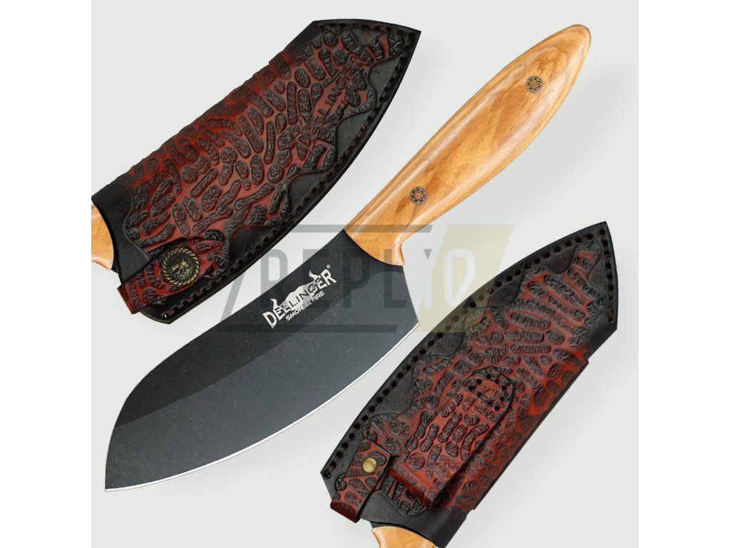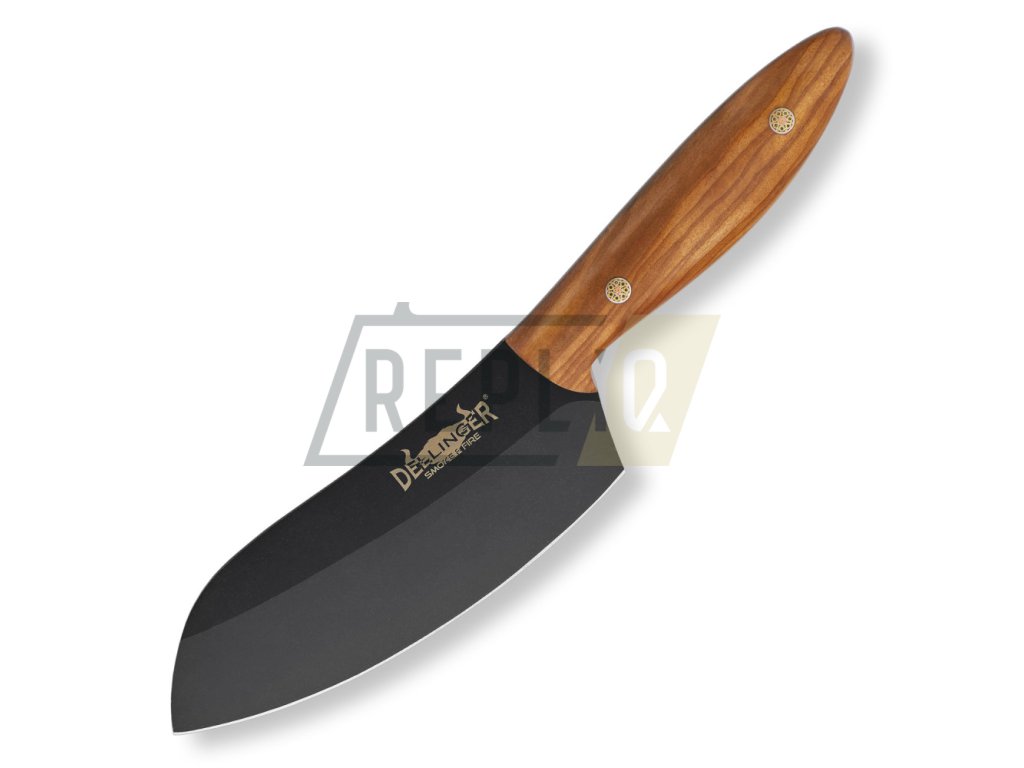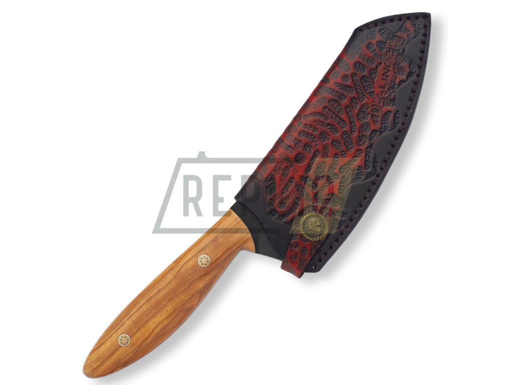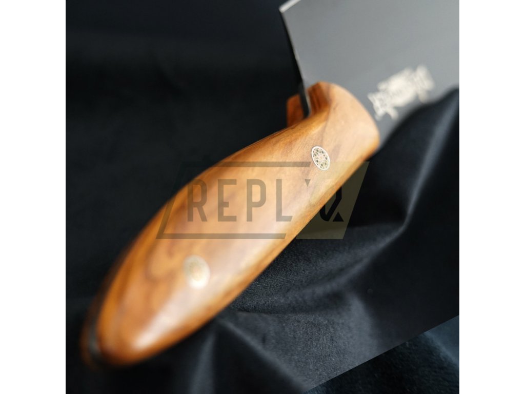 Exkluzivní kuchyňský nůž s rukojetí z překrásného olivového dřeva. Tento kuchyňský nůž vhodný pro BBQ je kovaný a zpracovaný z oceli D2. Po přesném a pečlivém vytvrzení, temperování a žíhání dosahuje tvrdosti Rockwell 60-62 (HRC). Jeho ostří jen tak někdo, nebo něco nepoškodí. Pro krájení a sekání zeleniny, masa a kostí je to klíčový nástroj bez kterého se už nikdy neobejdete. Budete chtít ukázat každé návštěvě jaký kus překrásného železa se skrývá ve Vaší kuchyni.