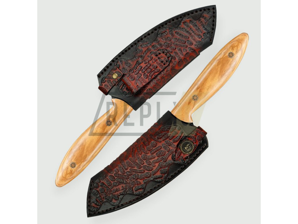Upozornění Každý nůž je vyroben z přírodních materiálů. Každý kus oceli je originální a nenapodobitelný, proto Váš nůž nemusí vypadat přesně tak jak na fotografii. Nůž, který obdržíte, bude stejně kvalitní a detailně opracovaný, ale může se mírně lišit. |