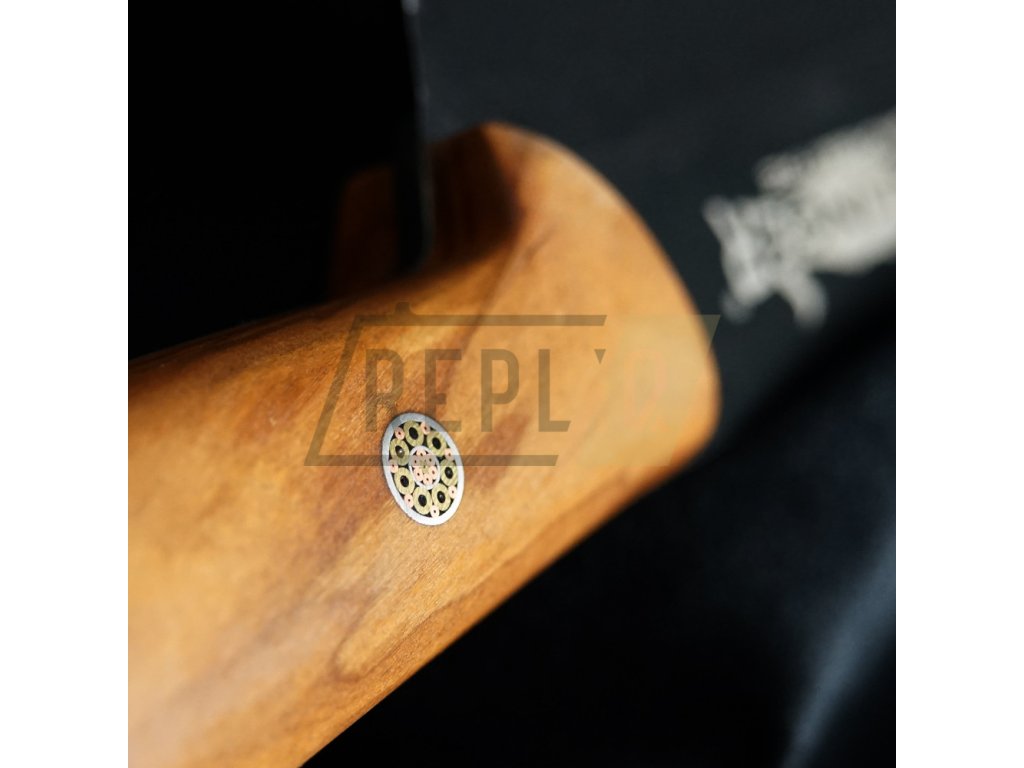 Masivní rukojeť pro pořádný chlapy je vyrobena z překrásného olivového dřeva a je ozdobena dvěma okrasnými nýty. Vždy je pečlivě ručně leštěná, ergonomicky tvarovaná a navržena pro vynikající ruční ovládání. Olivové dřevo je barevně velmi atraktivní a velmi žádané. Je vyhledáváno zejména výrobci nožů a umělci. Dřevo lze krásně leštit, je pevné a tvrdé. Olivové dřevo lze nazvat také jako "krása, která nestárne".