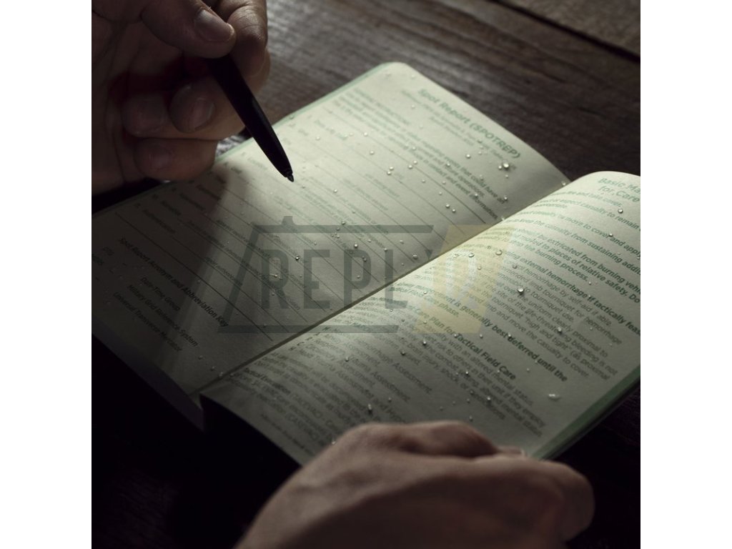 Taktická polní kniha - blok, zápisník. Odolné, dokonalé vázání sešitu drží pevně i ve velmi nepříznivém počasí a snese i drsnější zacházení. Desky jsou z materiálu Field-Flex, který jim dodává pružnost a stabilitu. Co si pod tím představit? Zápisník bez problémů ohnete a vložíte do kapsy, batohu, administrativní tašky. Po vyndání se desky zase bez poškození vrátí do původního rovného stavu. V sešitě najdete pro taktické/armádní použití nezbytná pravítka v metrických i imperiálních jednotkách (jednotky používané např. v USA), převodní tabulky, mapová měřítka.