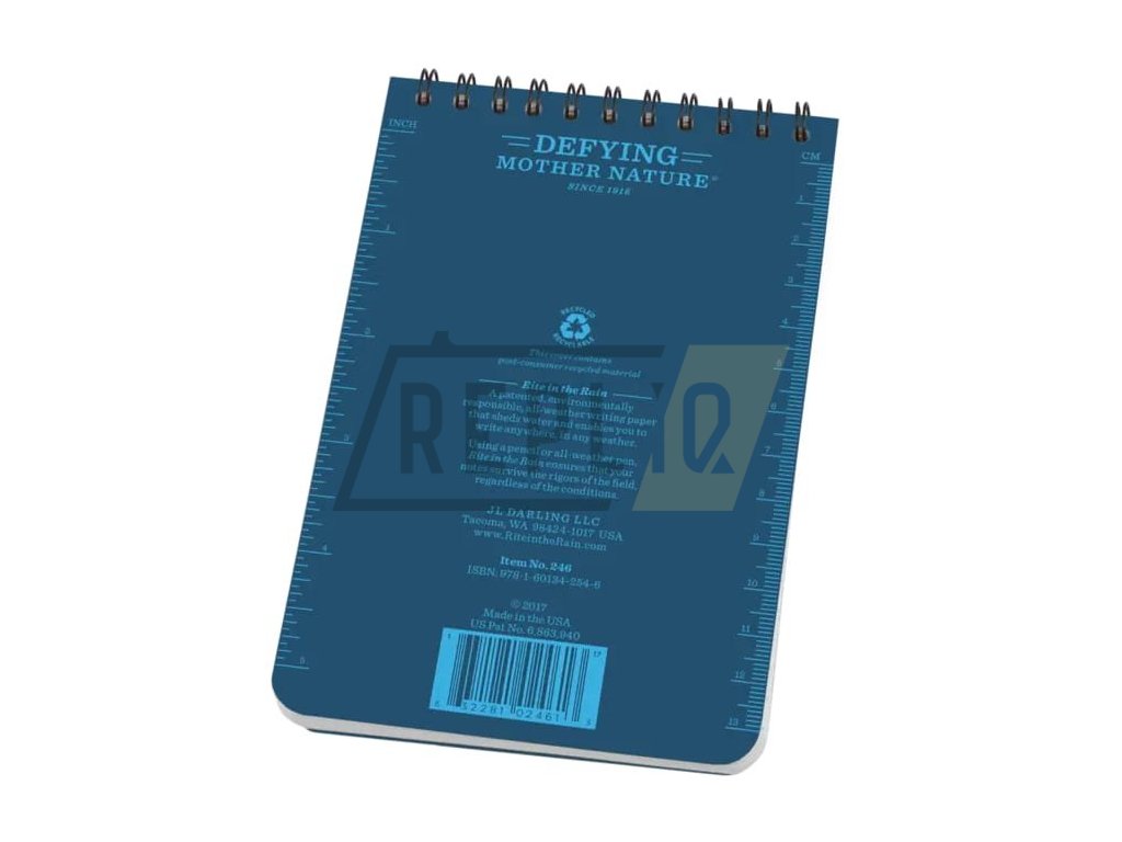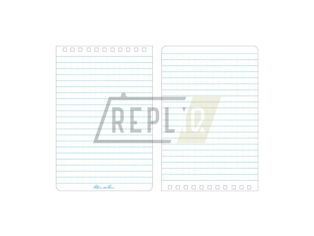 Nepromokavý linkovaný zápisník v kroužkové vazbě. Rozměr 165 x 105 mm. 50 listů. Součástí bloku převody jednotek imperiálního a metrického systému, mapová měřítka. Vyrobeno v USA.
