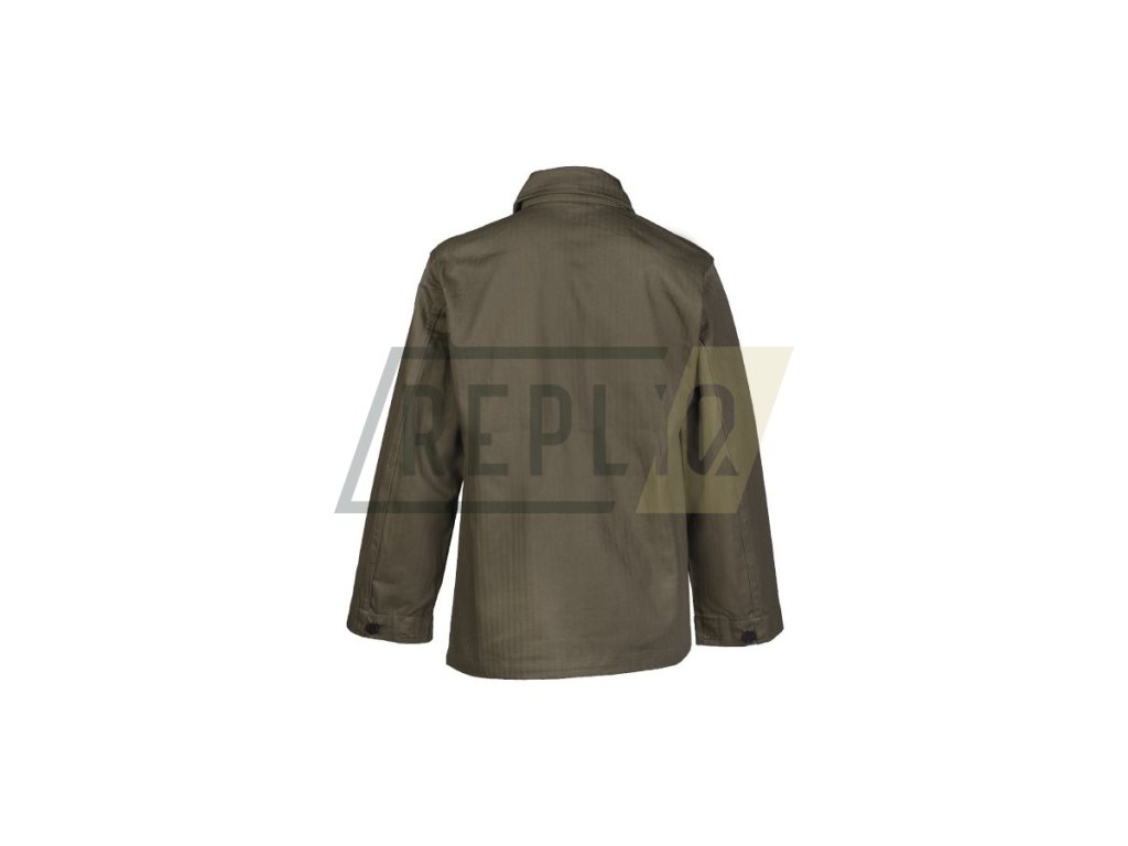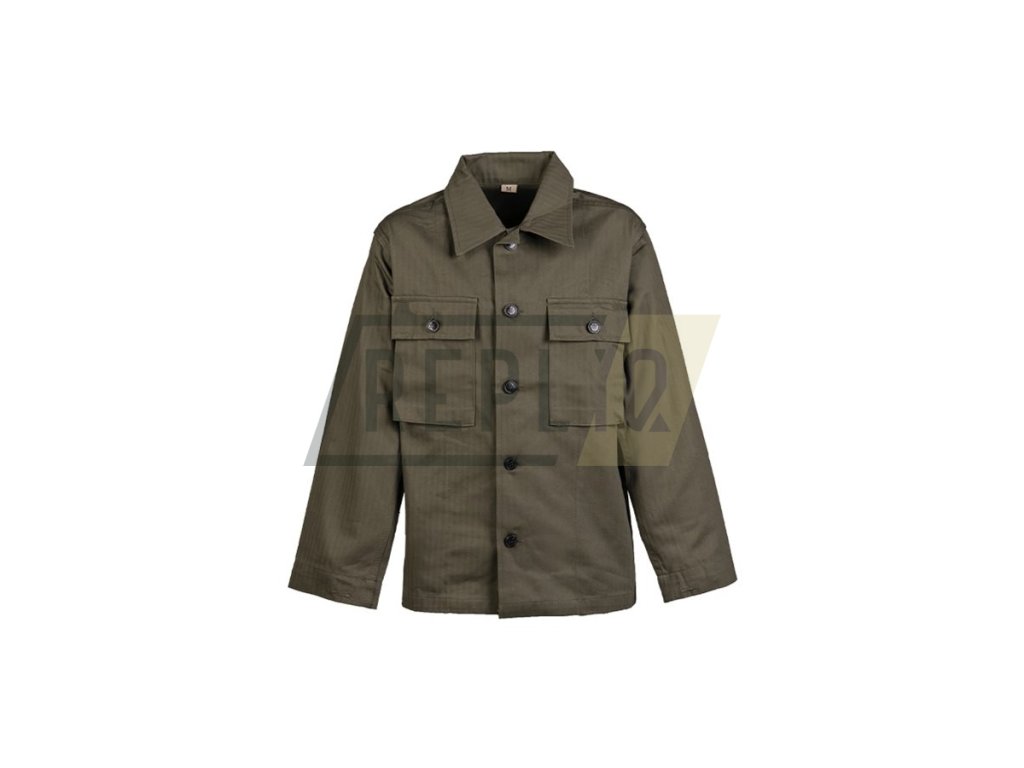Zdařilá reprodukce klasické americké HBT blůzy v dětském provedení. Blůza se zapíná pomocí knoflíků, disponuje dvěma hrudními kapsami a stojáčkovým límcem.