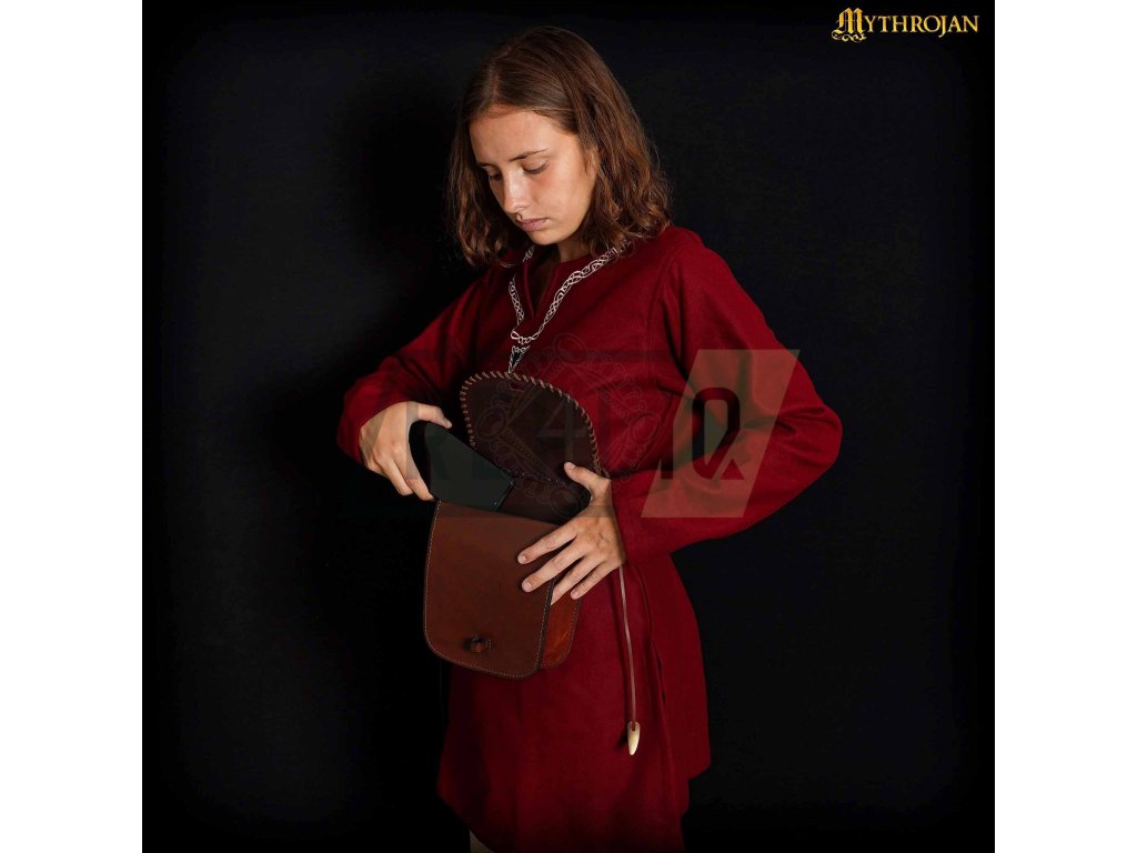 Středověká kožená brašna na opasek „Warrior of the North“ od Mythrojan 18,5 x 17 cm bude tvým dokonalým společníkem při jakémkoliv dobrodružství. Poutka na opasek této brašny pojmou opasky do šířky 6 cm.