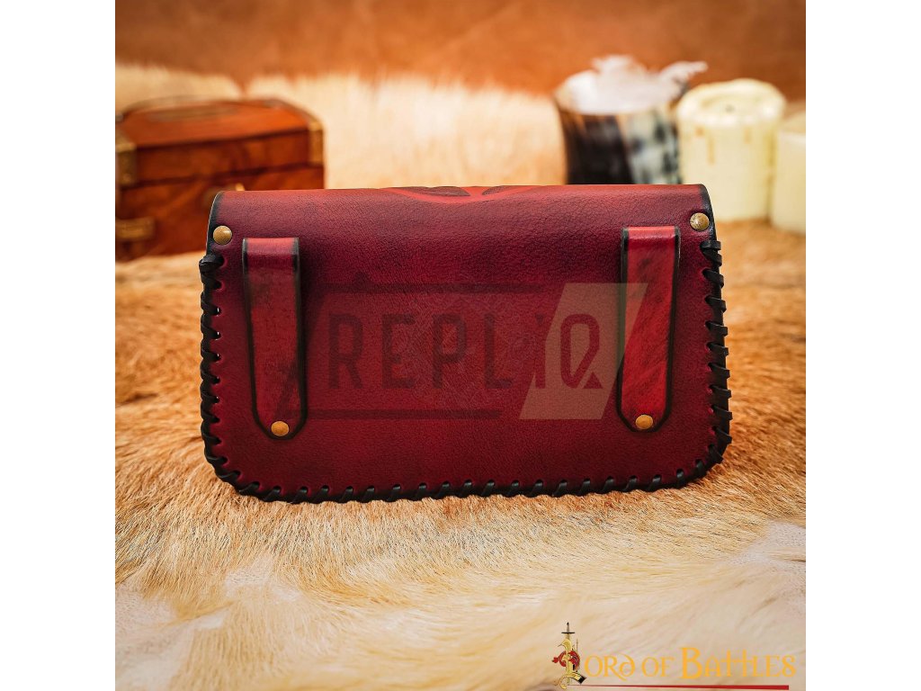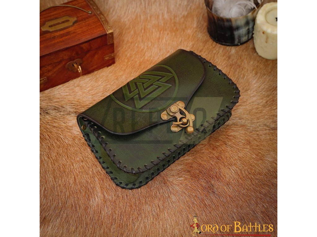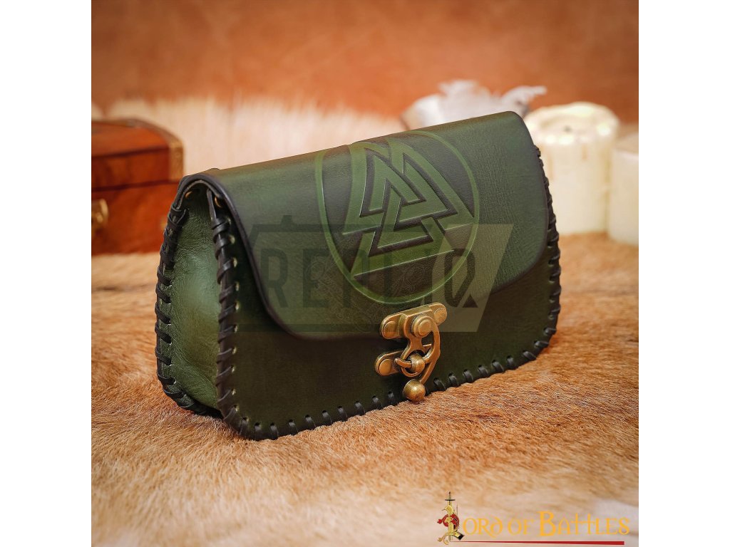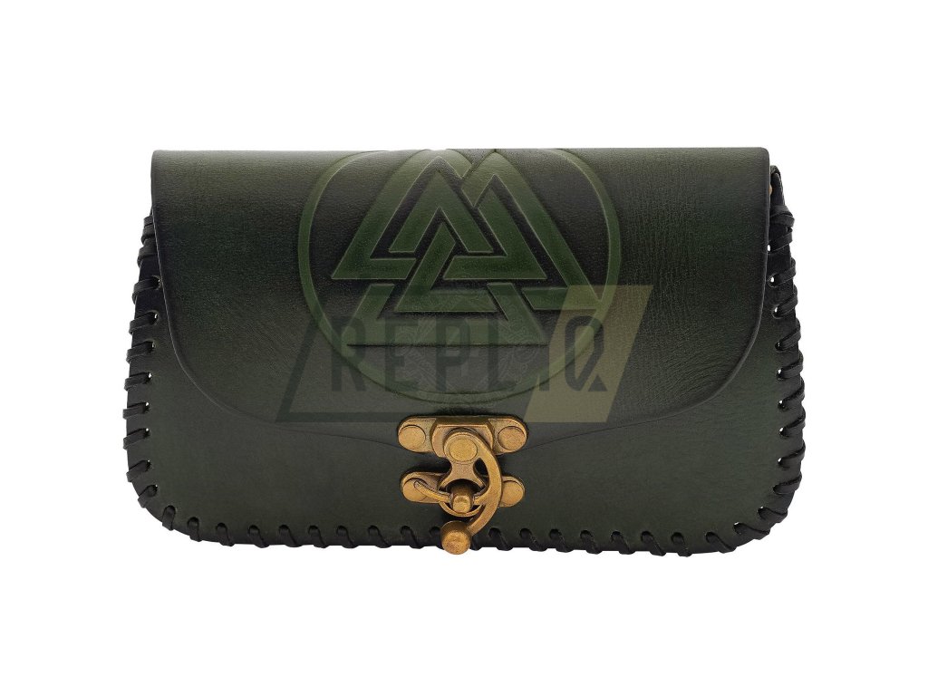 Germánská opasková brašna s vyraženým symbolem Valknut a háčkovou sponou - Outlet