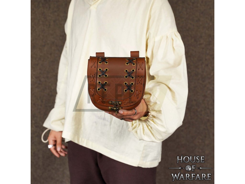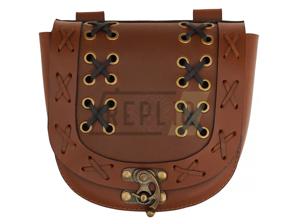 Středověká kožená brašna na opasek se šněrováním, hnědá