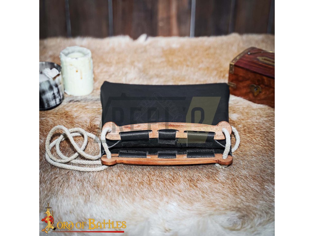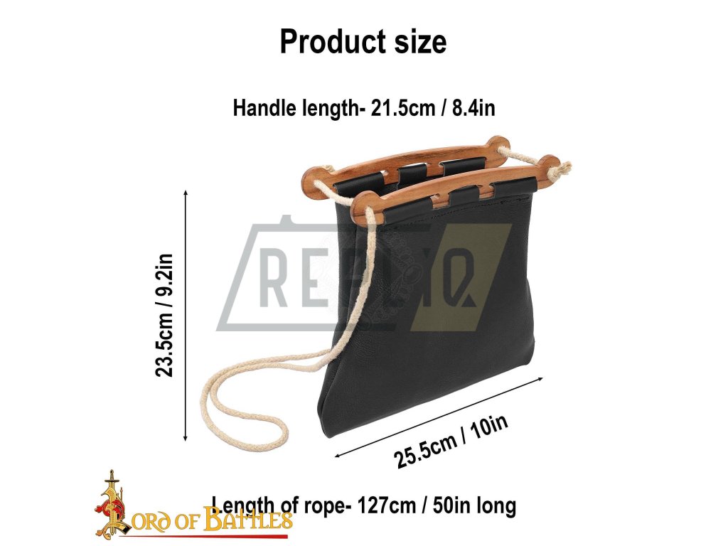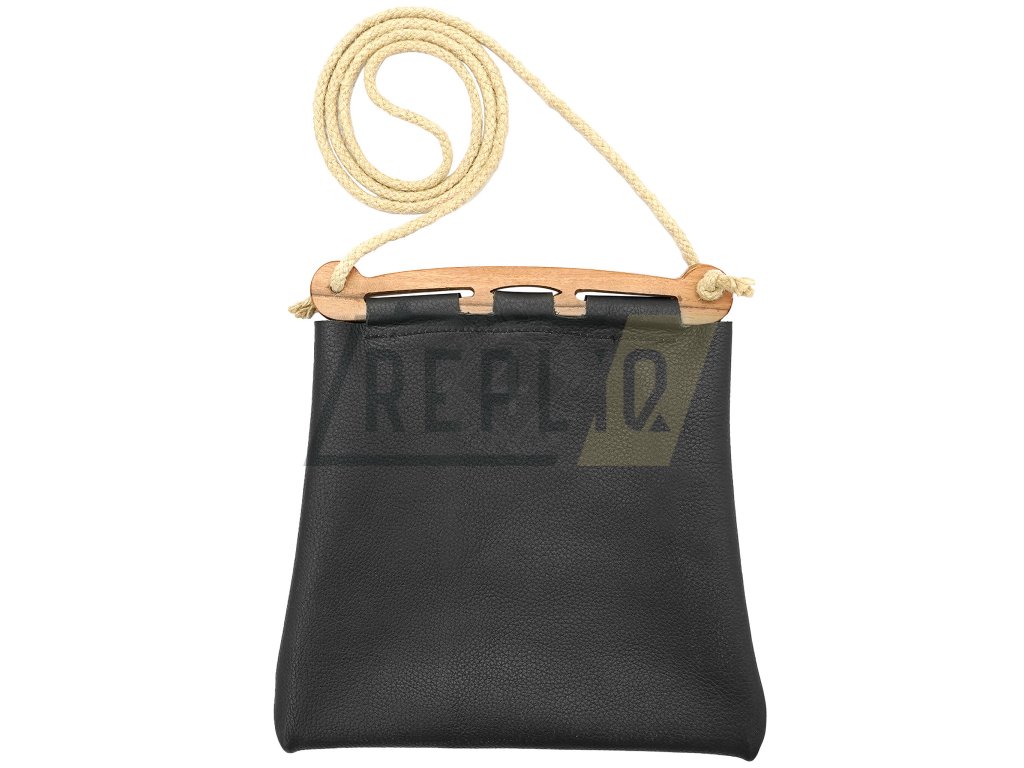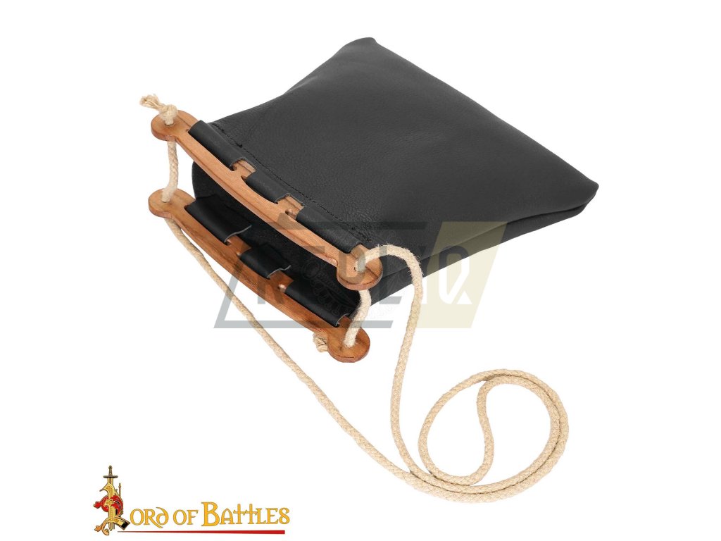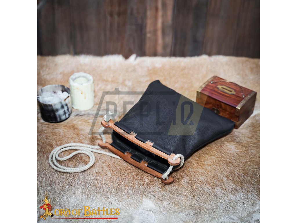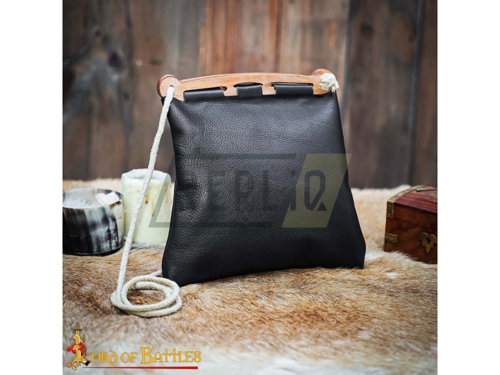 Černá vikinská kožená taška Haithabu s dřevěným rámem - Outlet