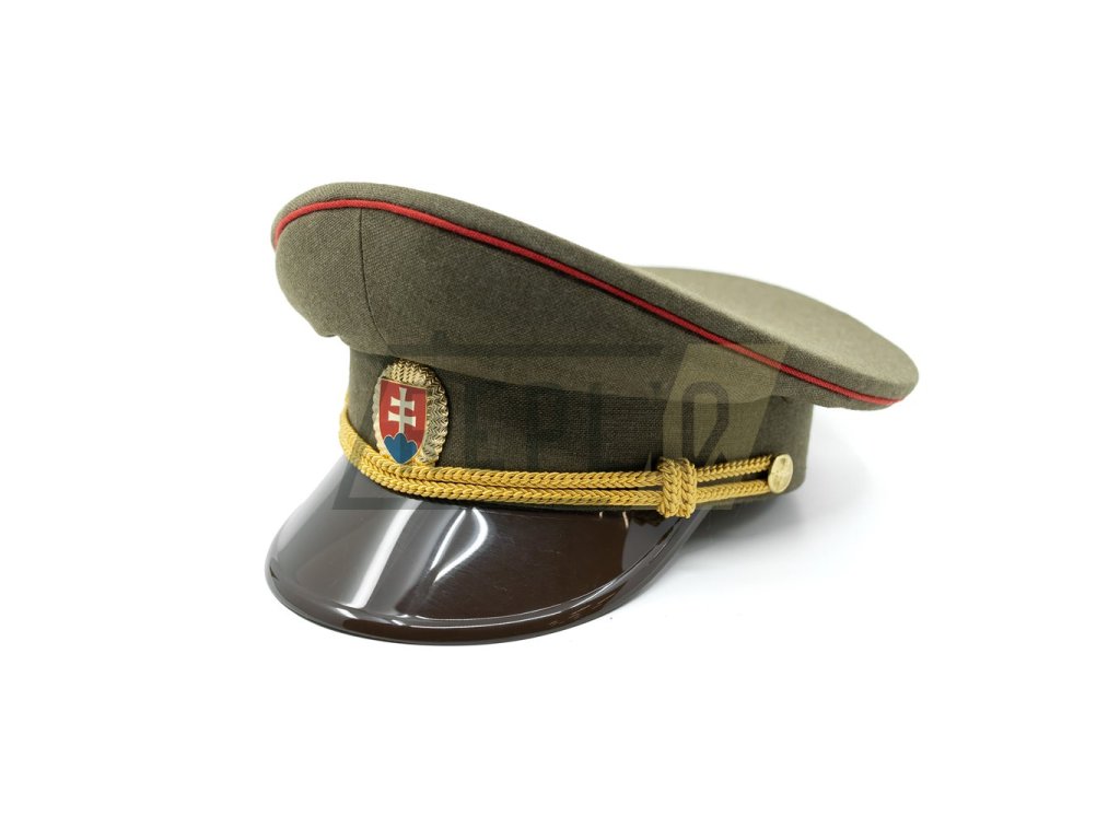 Brigadýrka důstojnická SK zlatý odznak, kšilt plast, červená linka ZELENÁ