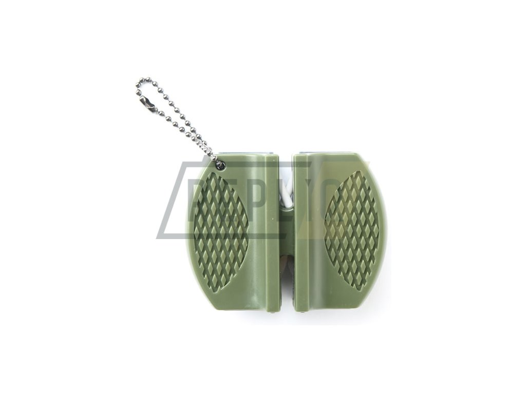 Jednoduchý ostřič nožů. Z jedné strany hrubé ostření pomocí karbitu, druhá strana opatřena keramikou pro jemné ostření.