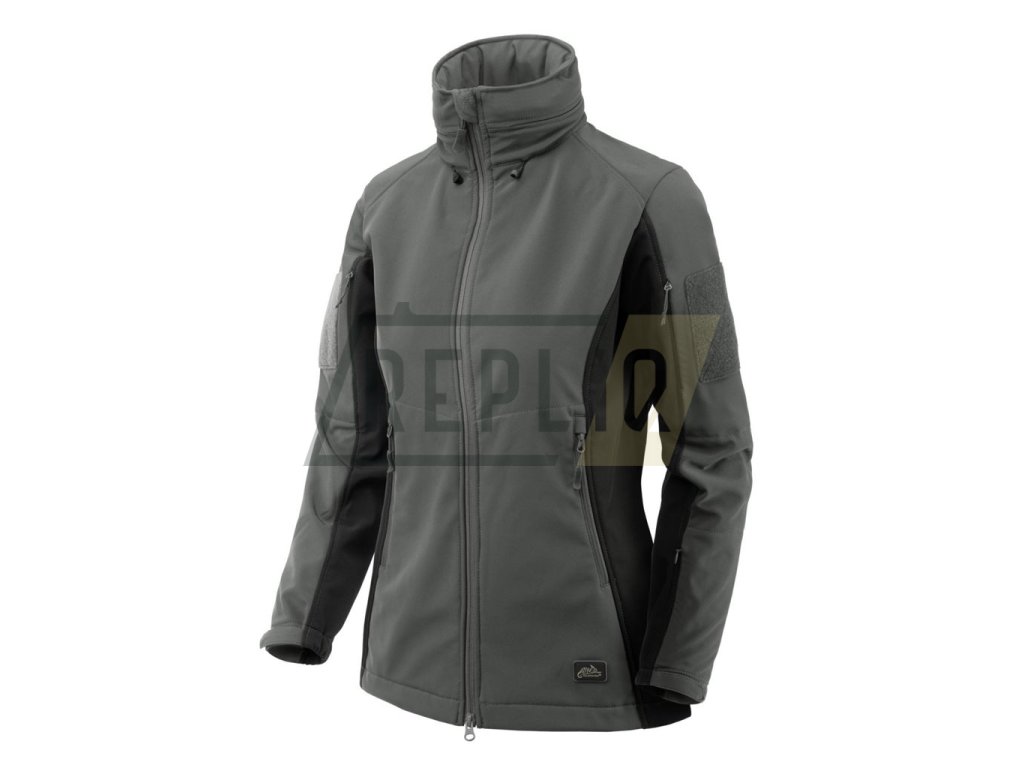 Lehká softshellová dámská bunda Gunfighter z materiálu Shark Skin - třívrstvé elastické látky, která poskytuje dostatečnou tepelnou izolaci, ochranu proti větru a vlhkosti a zároveň je velmi prodyšná. Vnější povrch je potažený teflonem pro lepší ochranu před vodou a znečištěním. Z vnitřní strany je soft fleecová a síťovaná podšívka. Kapuci lze snadno upravovat bez vyndání rukou z kapes šňůrkami schovanými v obou předních kapsách.