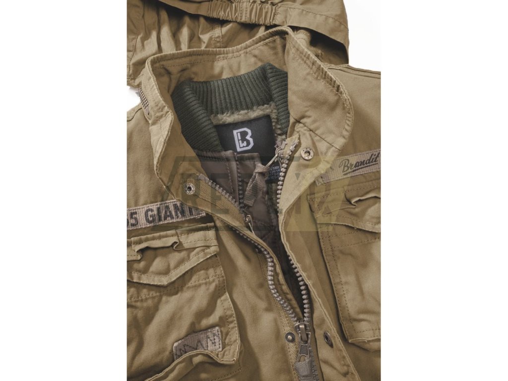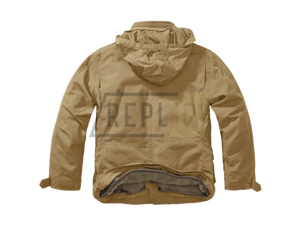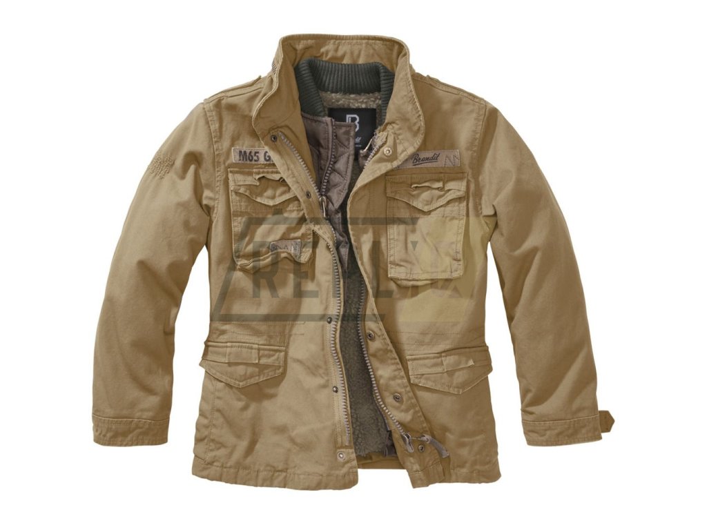 Prémiová dětská bunda s lehce "opraným" vzhledem střihem vycházející z legendární bundy M65. Je vyrobená z bavlny o vysoké gramáži. Zapínání je řešené pomocí robustního kovového zipu, který je proti profouknutí krytý pomocí légou zapínanou druky. Bunda disponuje vnitřní hřejivou vložkou vpínanou pomocí zipu. Límec bundy v sobě skrývá kapuci přístupnou skrze zip. K uložení výbavy na bundě slouží celkem celkem čtyři přední kapsy. Každá z kapes disponuje mohutnou klopou zapínanou drukem. Bunda se dá velikostně nastavit v oblasti pasu, manžetách rukávů a na spodním lemu.